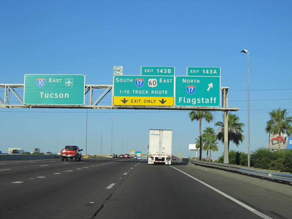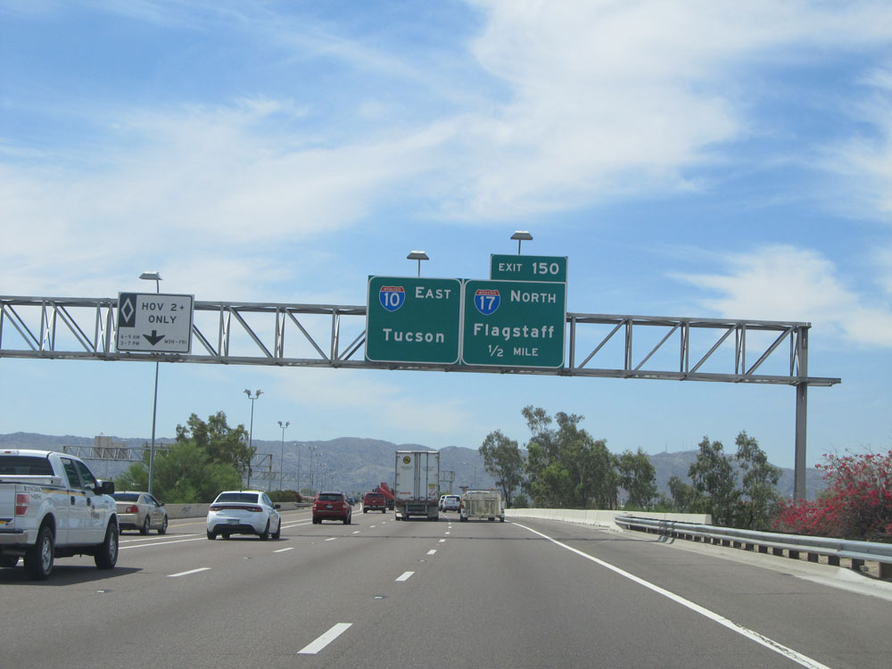 Interstate 10 East at Exit 150: Interstate 17 North - Flagstaff (Photo taken 5/20/15). |
