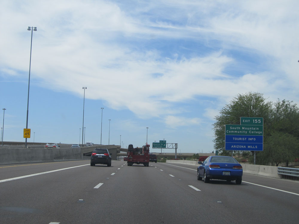 Take Exit 155 to South Mountain Community College, Arizona Mills, and Tourist Info. (Photo taken 5/20/15). |