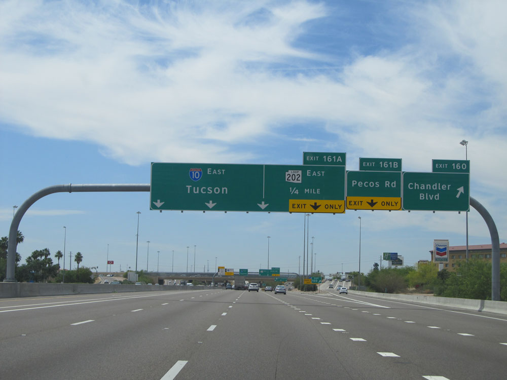 Interstate 10 East at Exit 161: AZ Loop 202 East / Pecos Rd (Photo taken 5/20/15). |