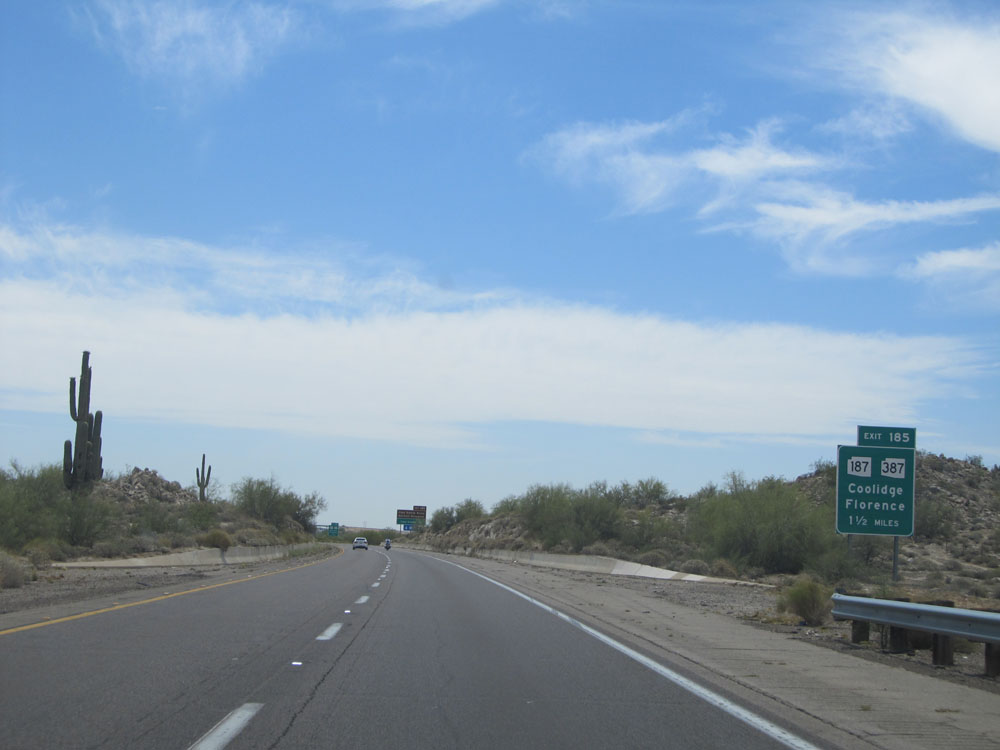 Interstate 10 East at Exit 185: AZ 187 / AZ 387 - Coolidge / Florence (Photo taken 5/20/15). |