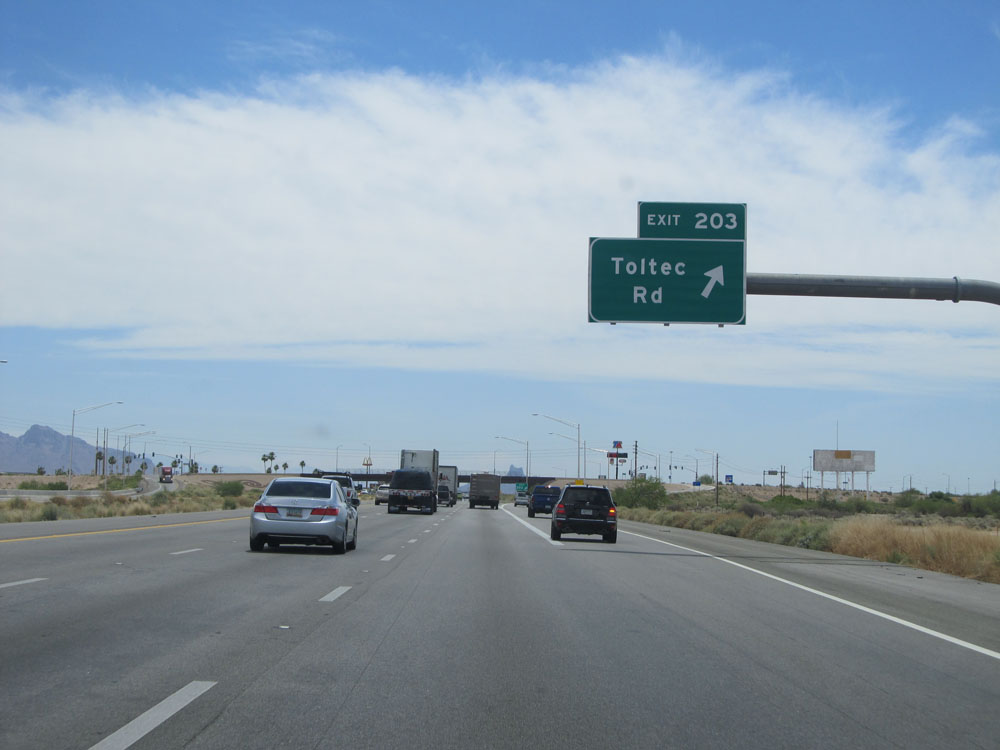 Interstate 10 East at Exit 203: Toltec Rd (Photo taken 5/20/15). |