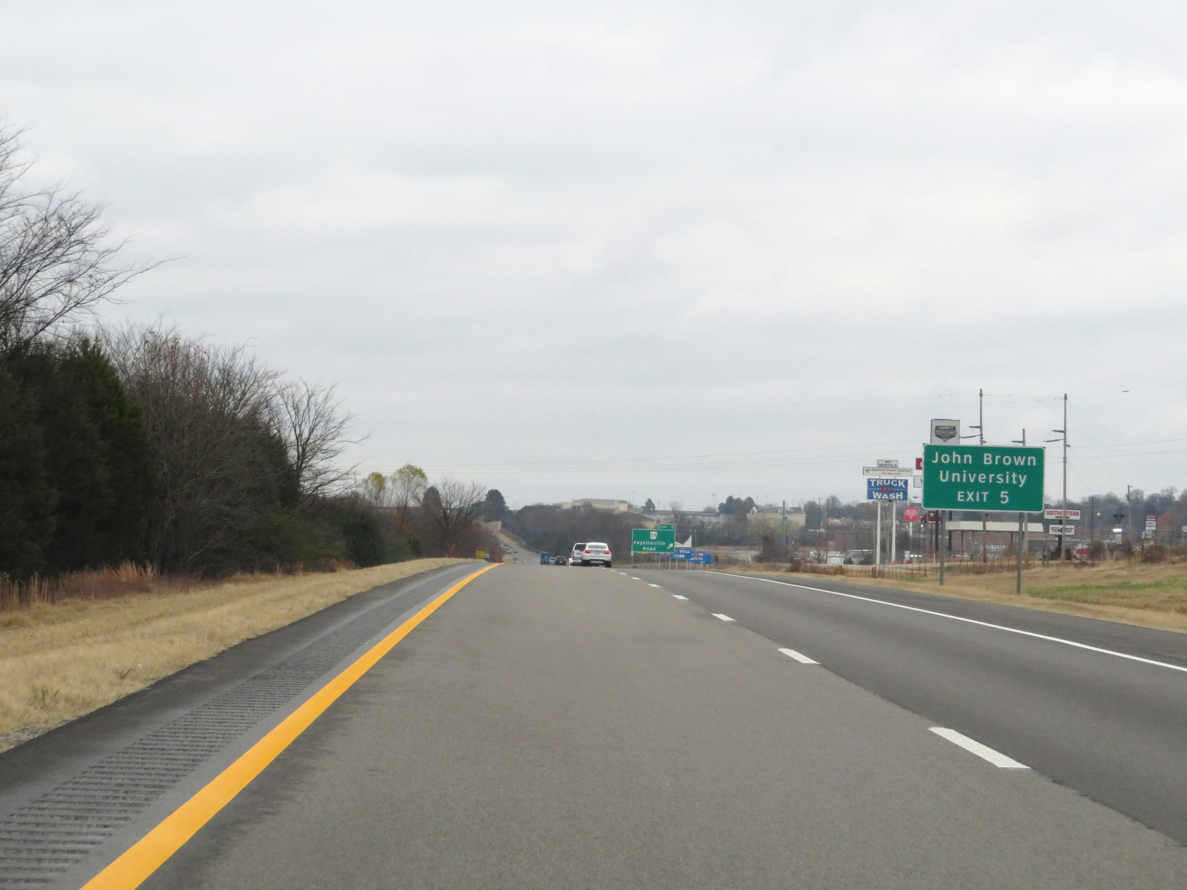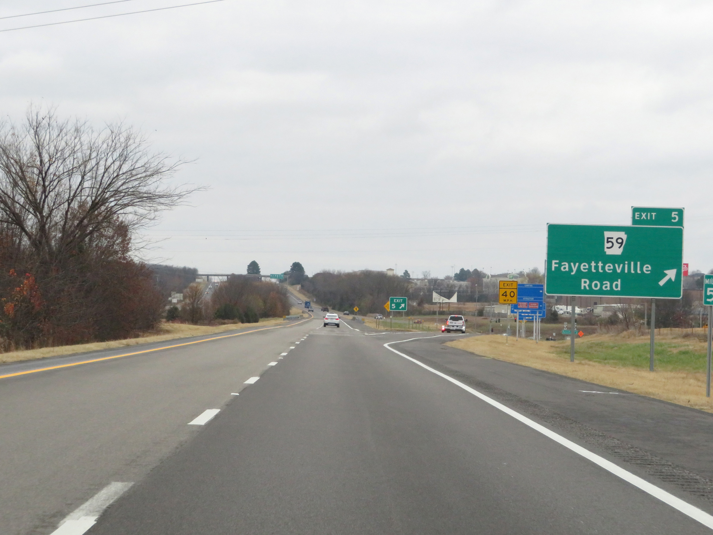 Interstate 40 East at Exit 5: AR 59 - Fayetteville Road (Photo taken 12/12/20). |