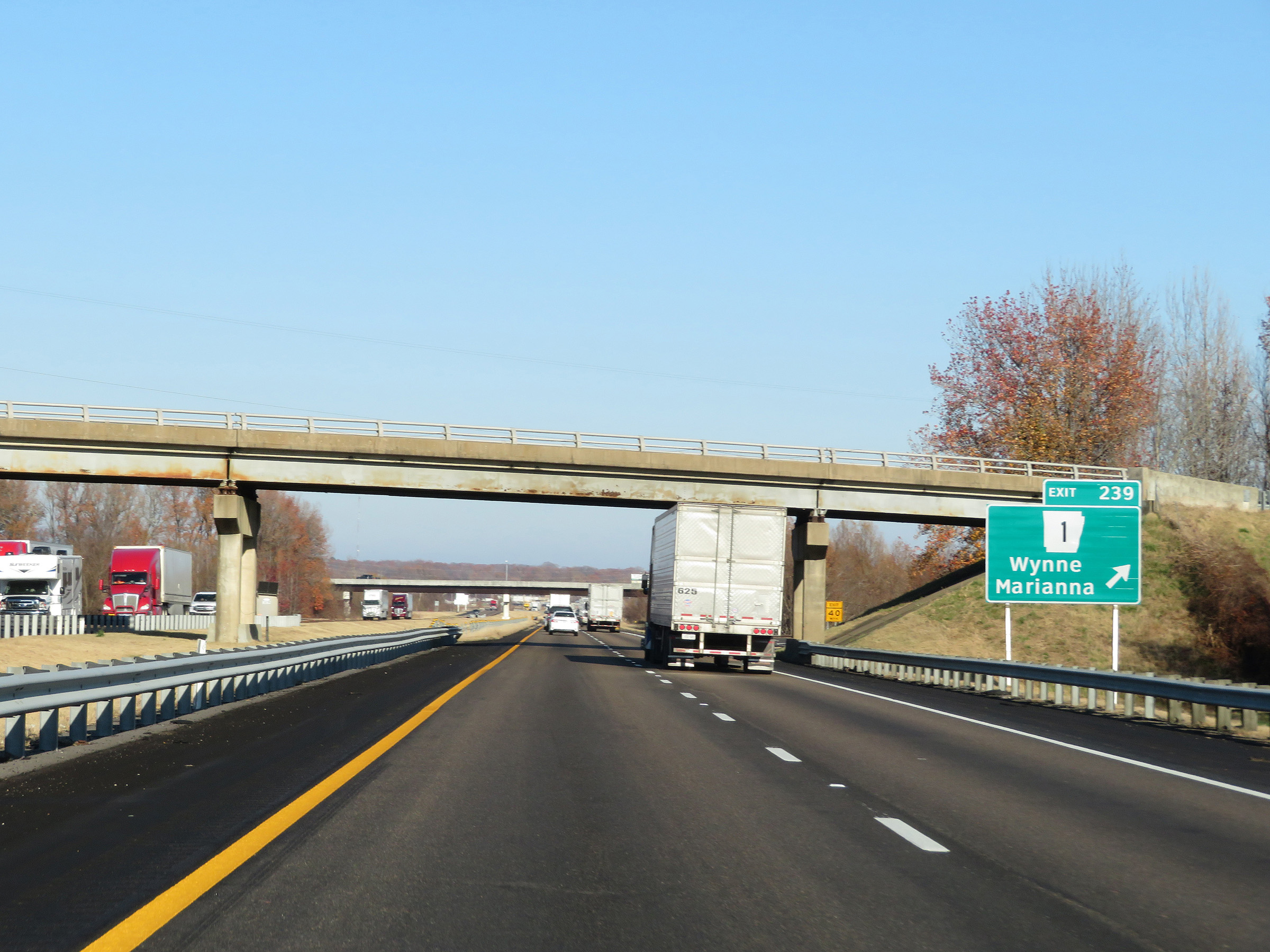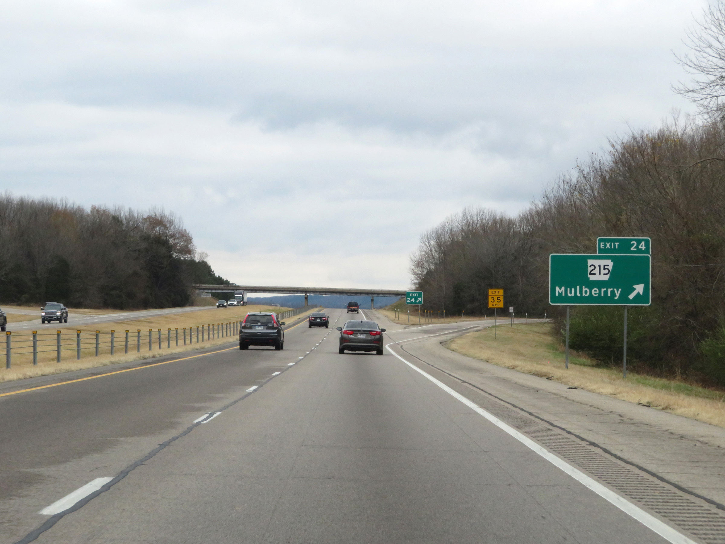 Interstate 40 East at Exit 24: AR 215 - Mulberry (Photo taken 12/12/20). |