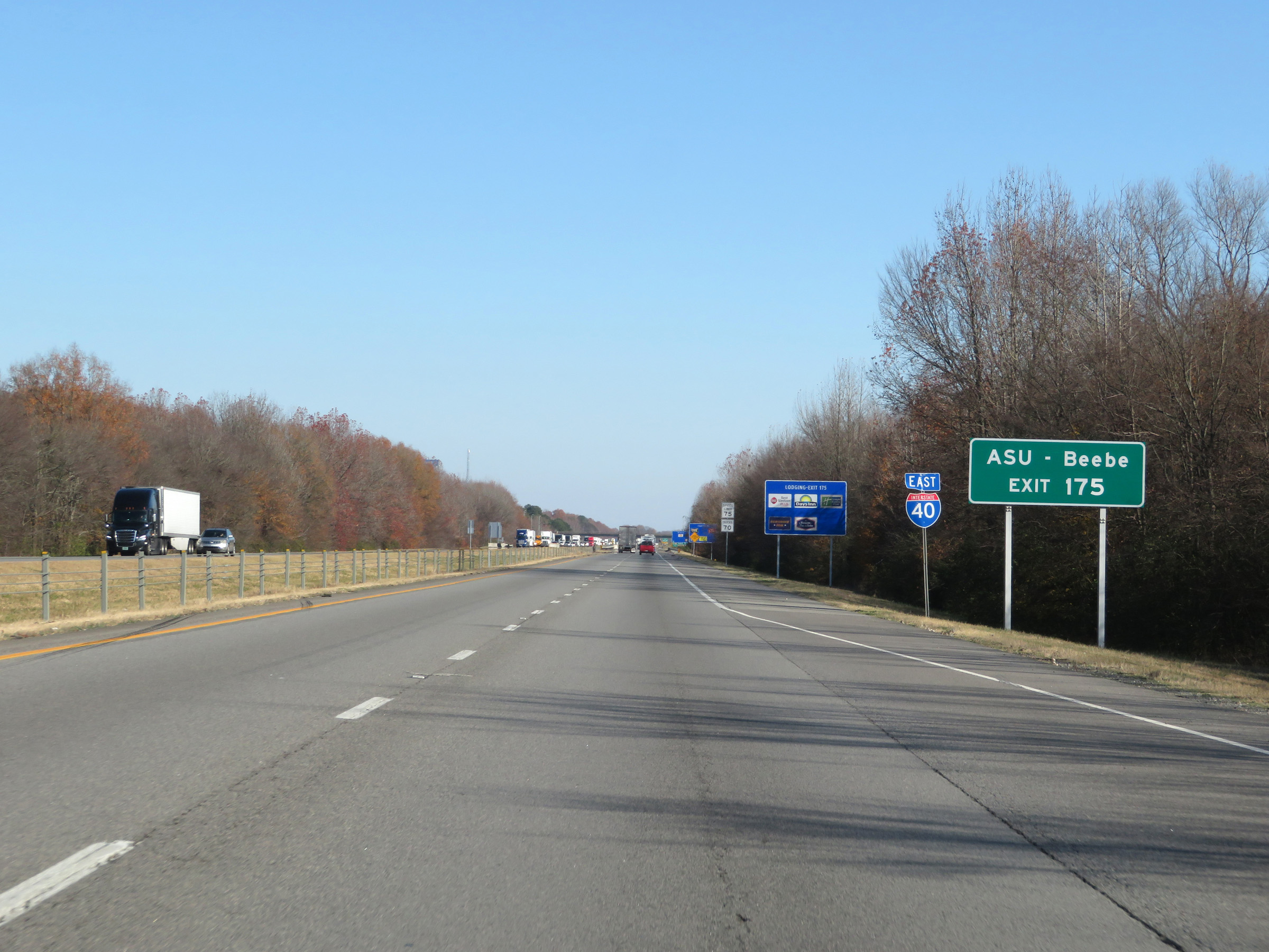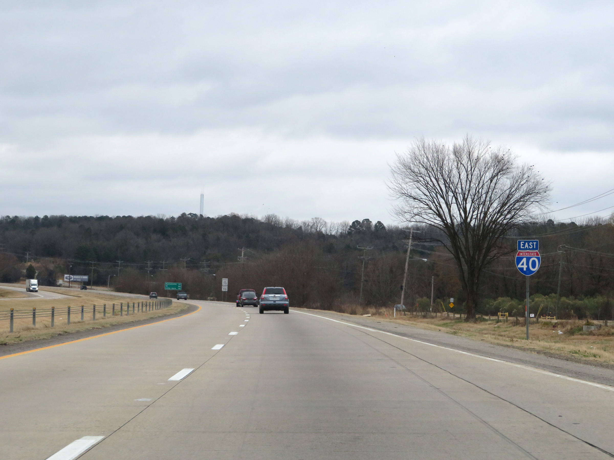 Interstate 40 East reassurance shield upon entering Arkansas. (Photo taken 12/12/20). |