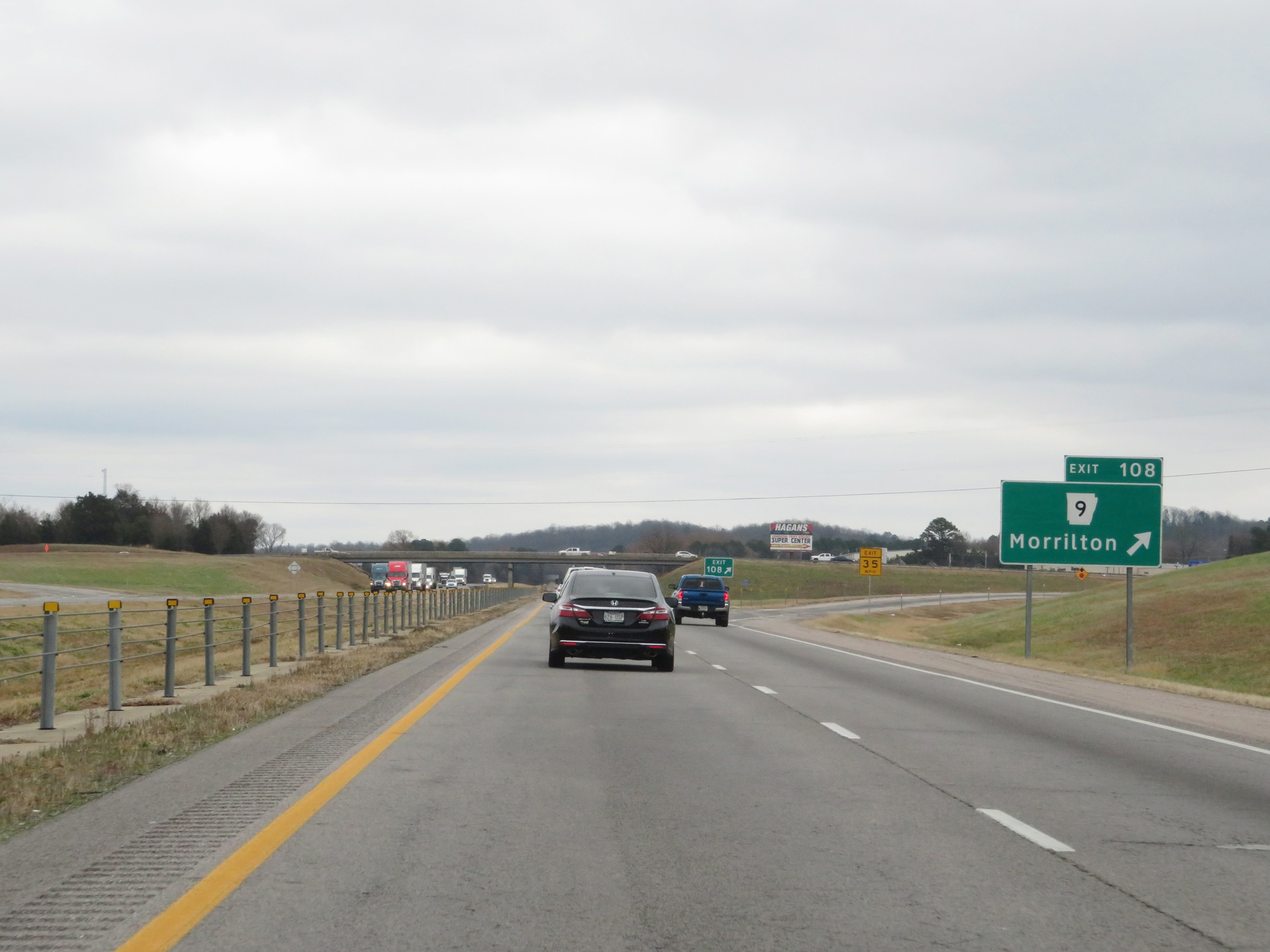 Interstate 40 East as it prepares to traverse a series of curves to the east of Exit 35.(Photo taken 12/12/20). |