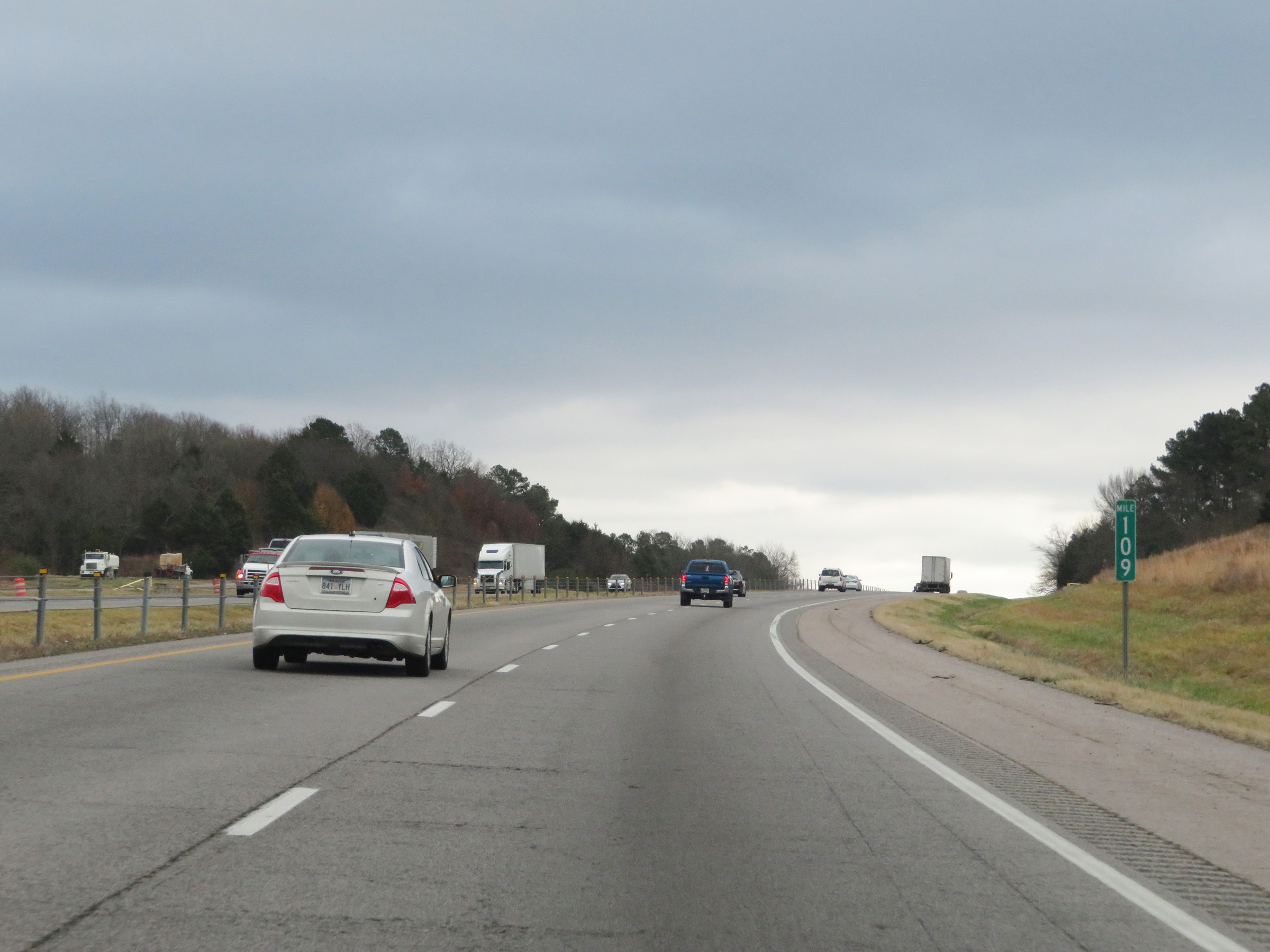 Mileage sign at mile marker 47. It's 8 miles to Clarksville, 100 miles to the junction of Interstate 430, and 109 miles to Little Rock. (Photo taken 12/12/20). |