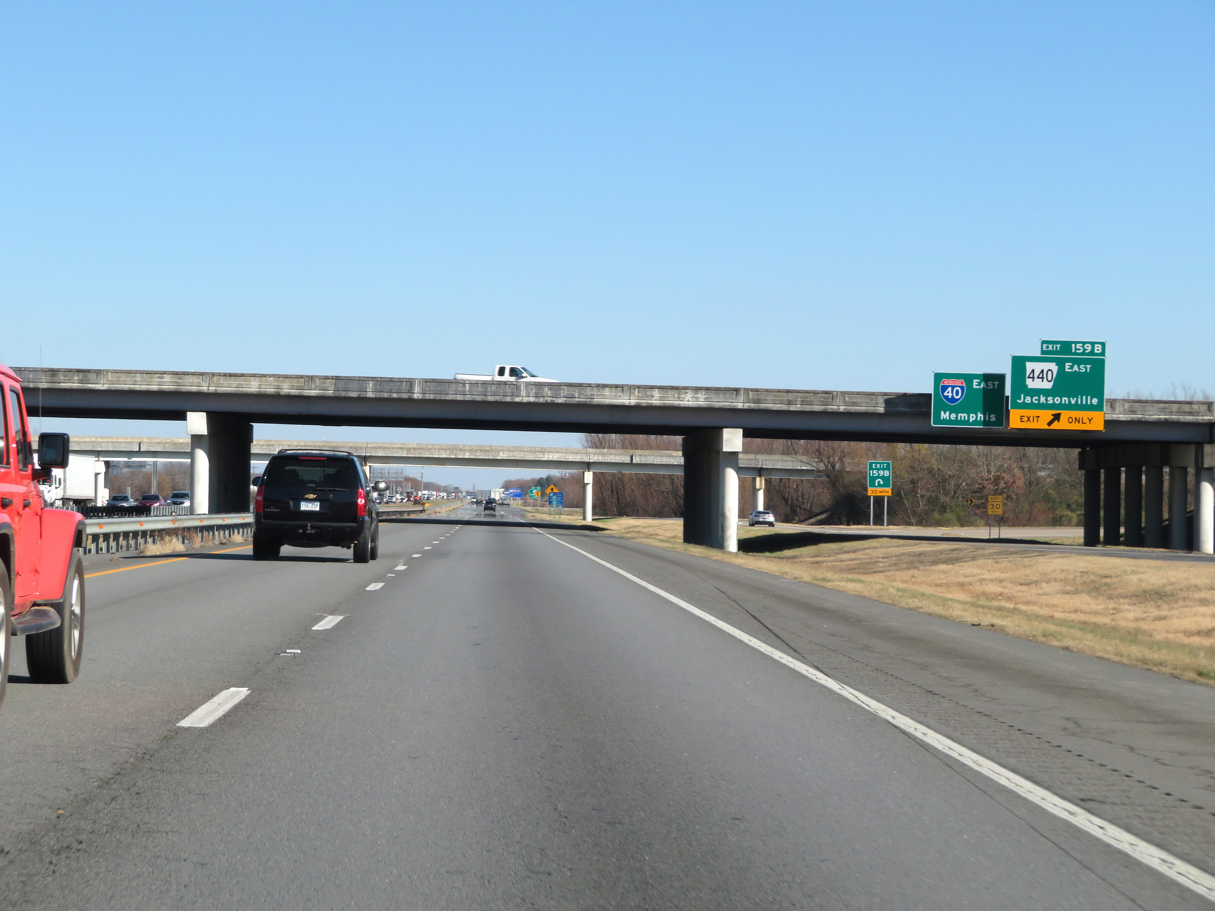 Interstate 40 East as it passes under the ramps to and from Interstate 540. (Photo taken 12/12/20). |
