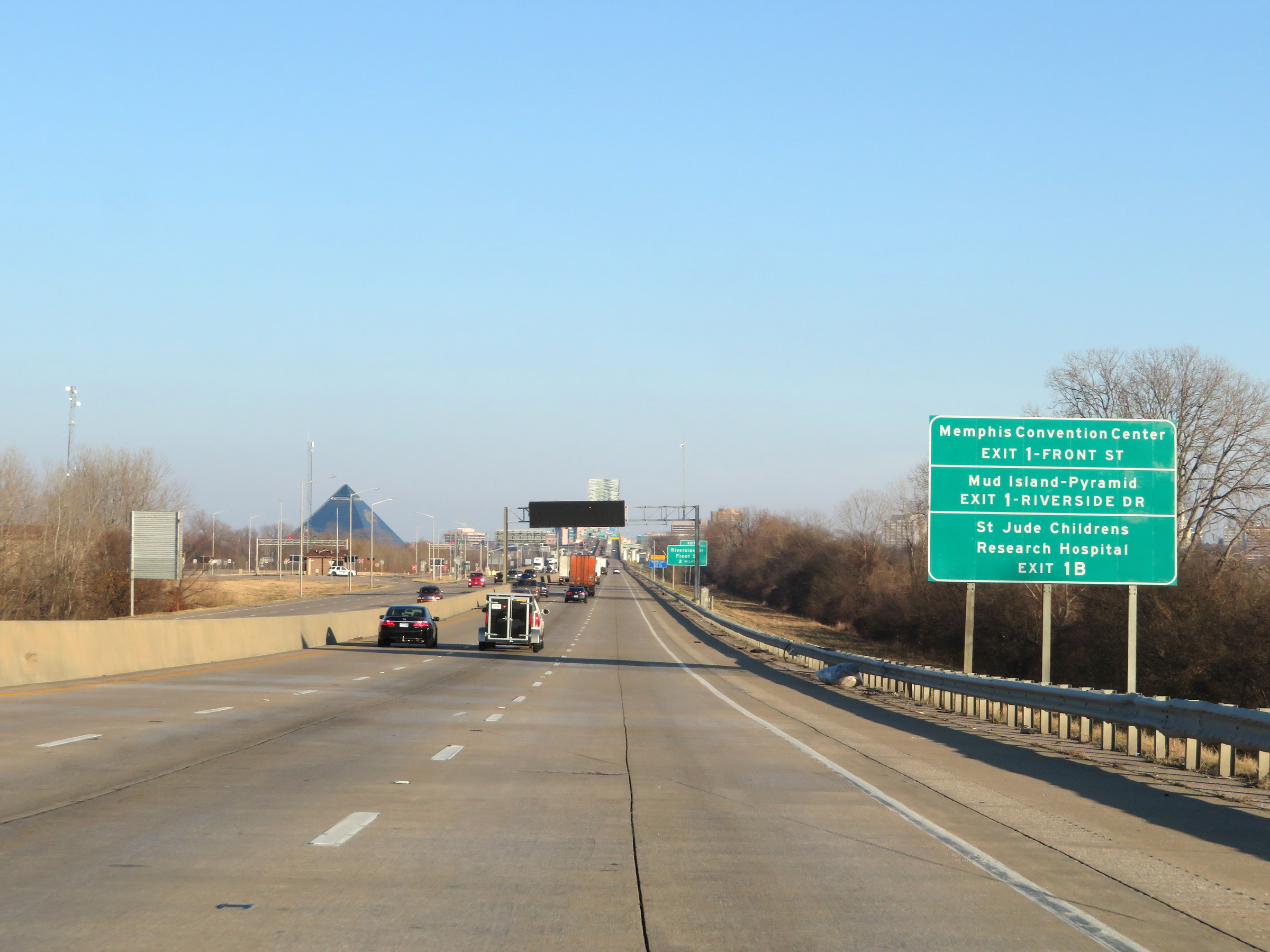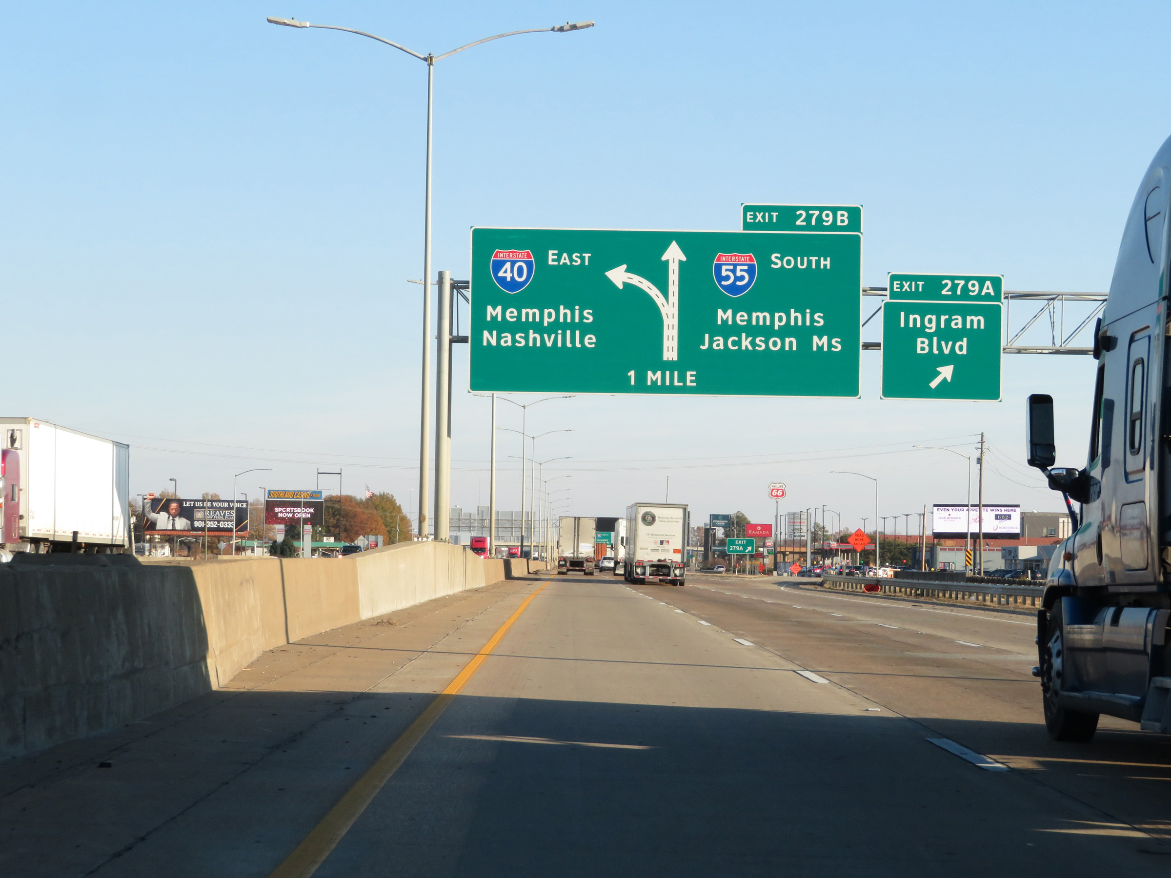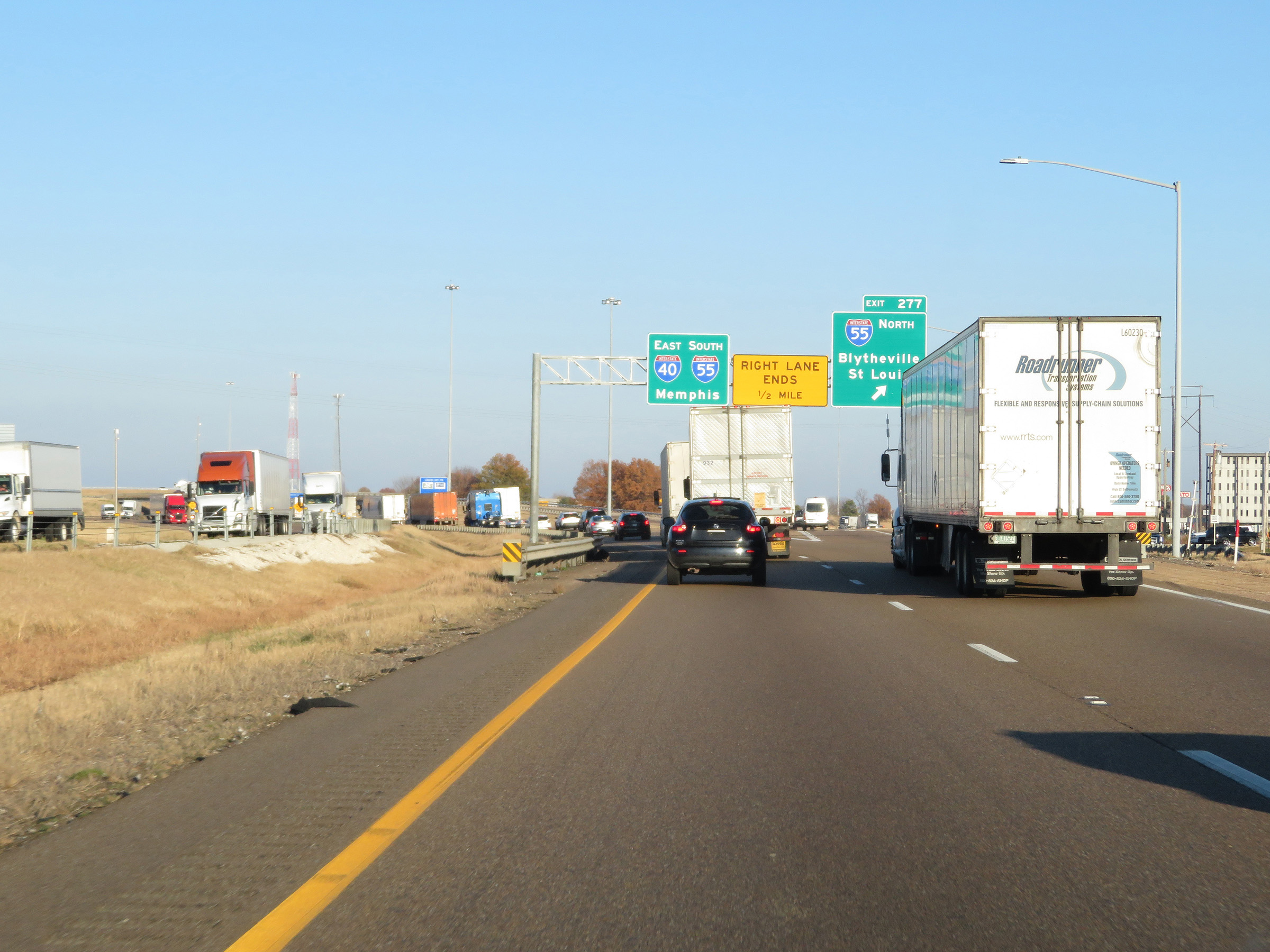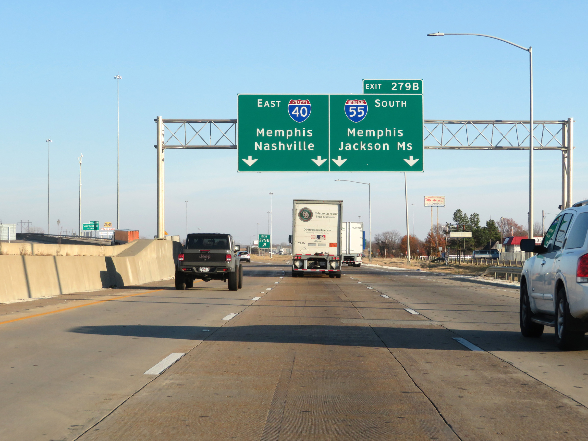 Interstate 40 East at Exit 20: Dyer / Mulberry (Photo taken 12/12/20). |