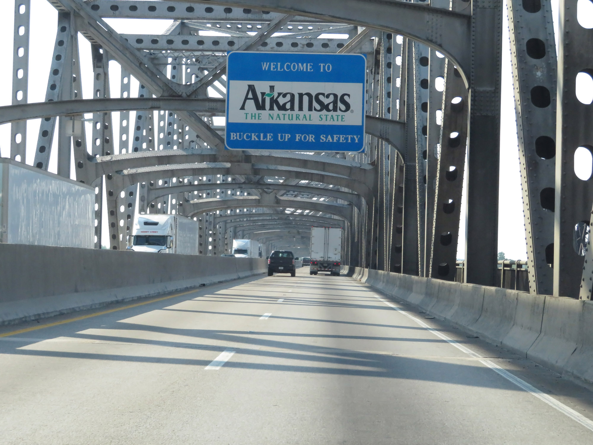 Interstate 55 North as it enters Arkansas by crossing the Memphis-Arkansas Bridge over the Mississippi River. (Photo taken 8/12/19). |