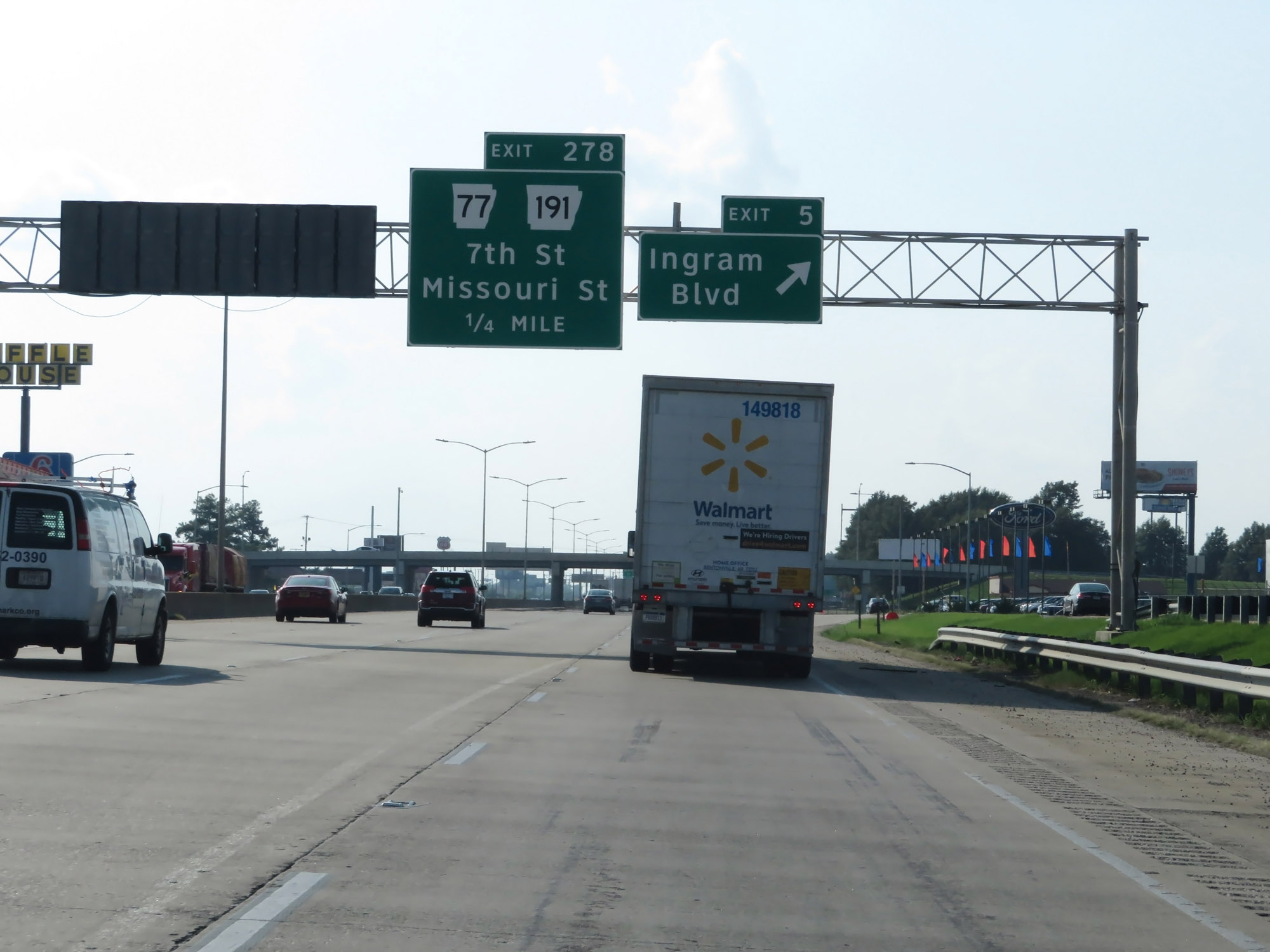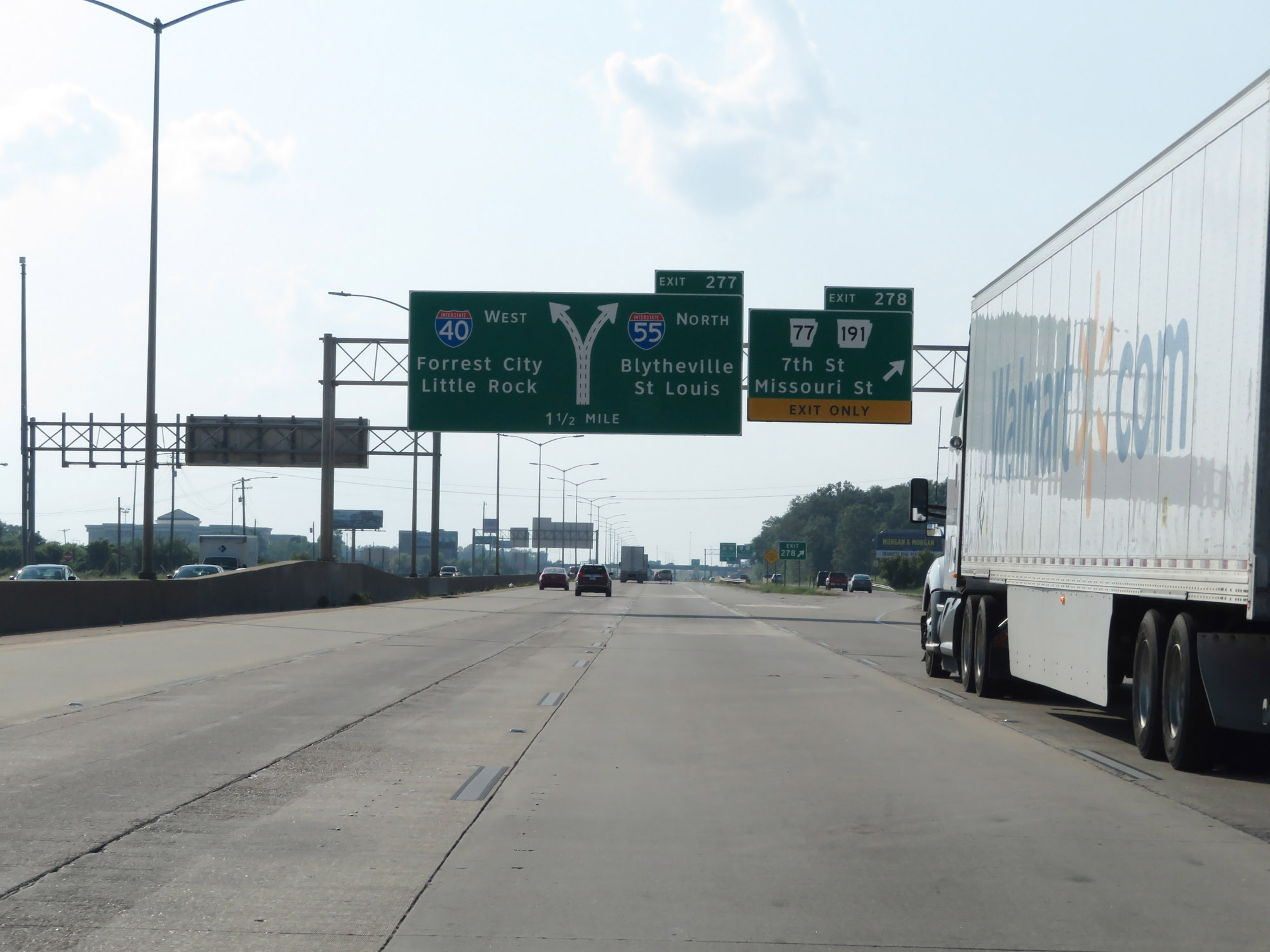 Interstate 55 North / Interstate 40 West at Exit 278: AR 77 / AR 191 - 7th St / Missouri St (Photo taken 8/12/19). |