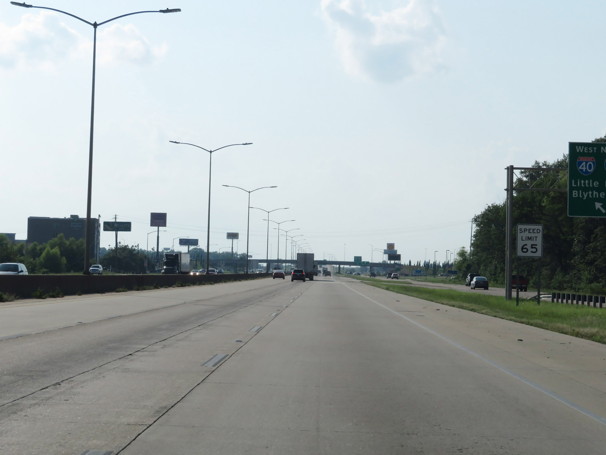 The speed limit on Interstate 55 North / Interstate 40 West remains 65 mph through the West Memphis area. (Photo taken 8/12/19). |