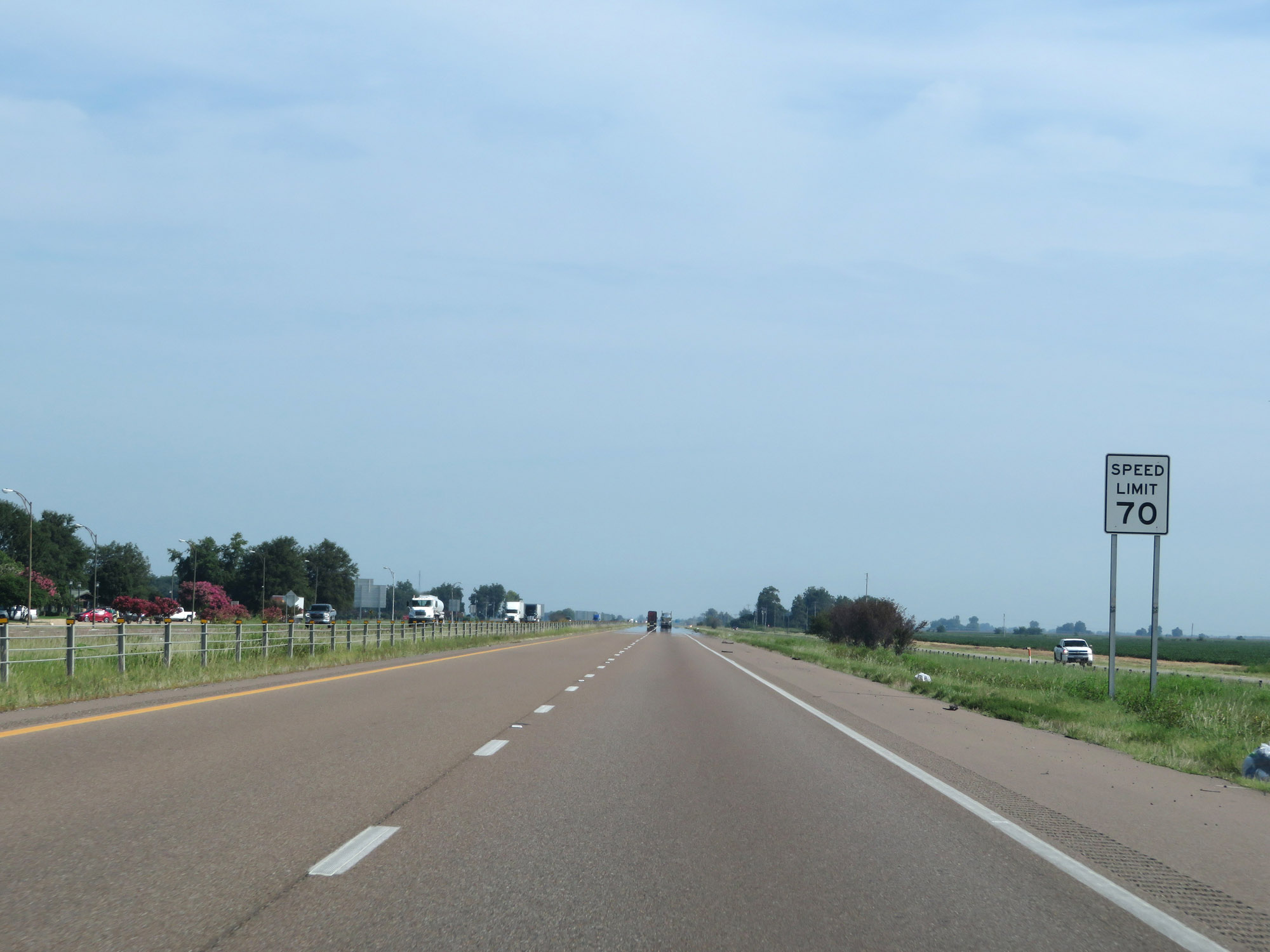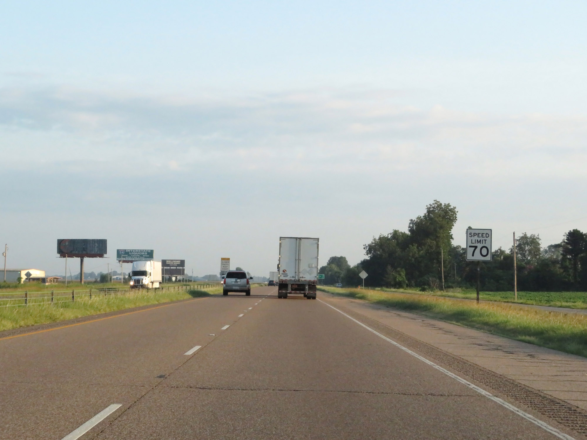The speed limit on Interstate 55 North starts out at 65 mph in and through the West Memphis area. (Photo taken 8/12/19). |