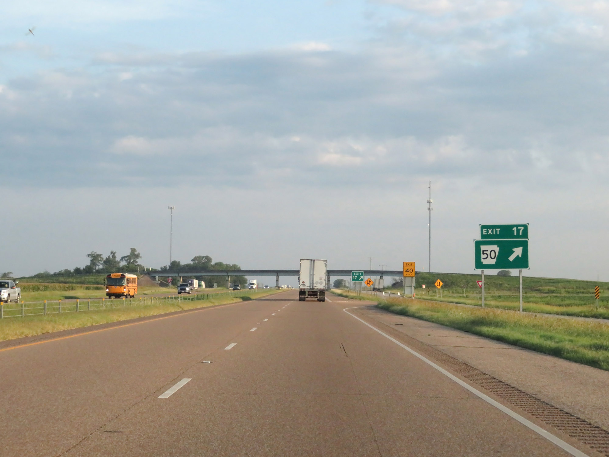 Interstate 55 North at Exit 17: AR 50 (Photo taken 8/13/19). |