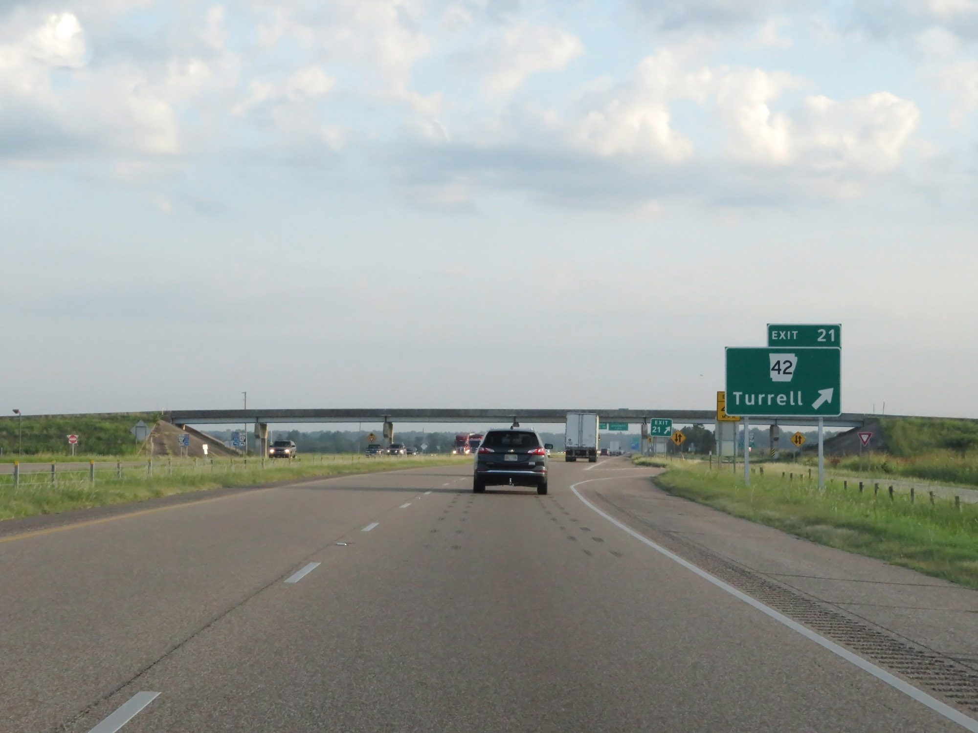 Interstate 55 North at Exit 21: AR 42 - Turrell (Photo taken 8/13/19). |