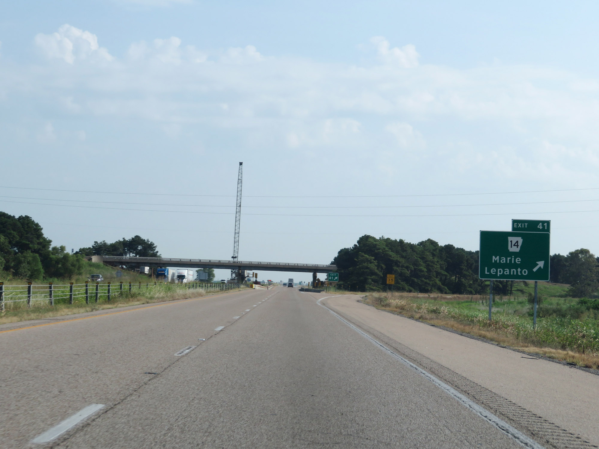 Interstate 55 North at Exit 41: AR 14 - Marie / Lepanto (Photo taken 8/13/19). |