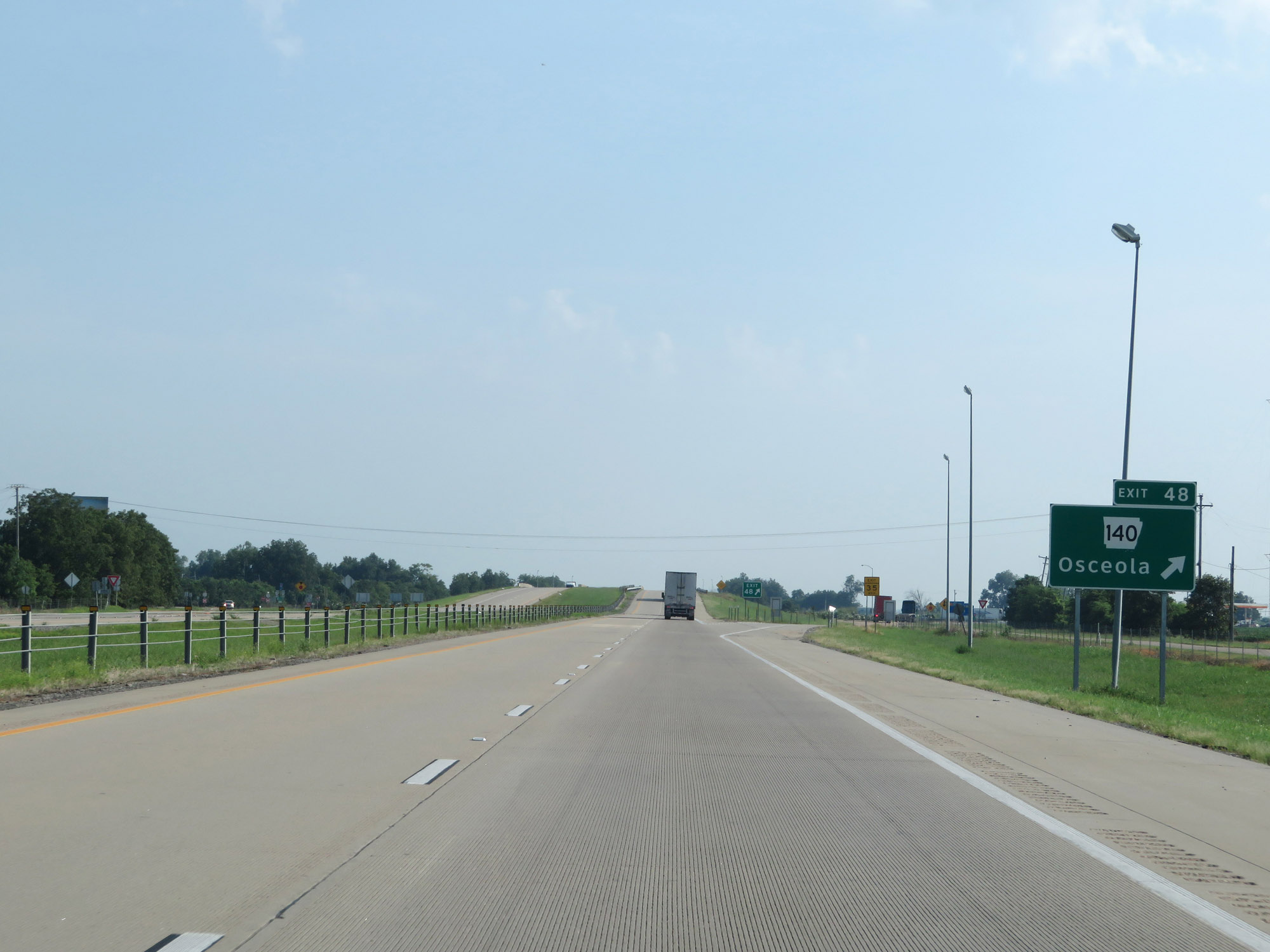 Interstate 55 North at Exit 48: AR 140 - Osceola (Photo taken 8/13/19). |