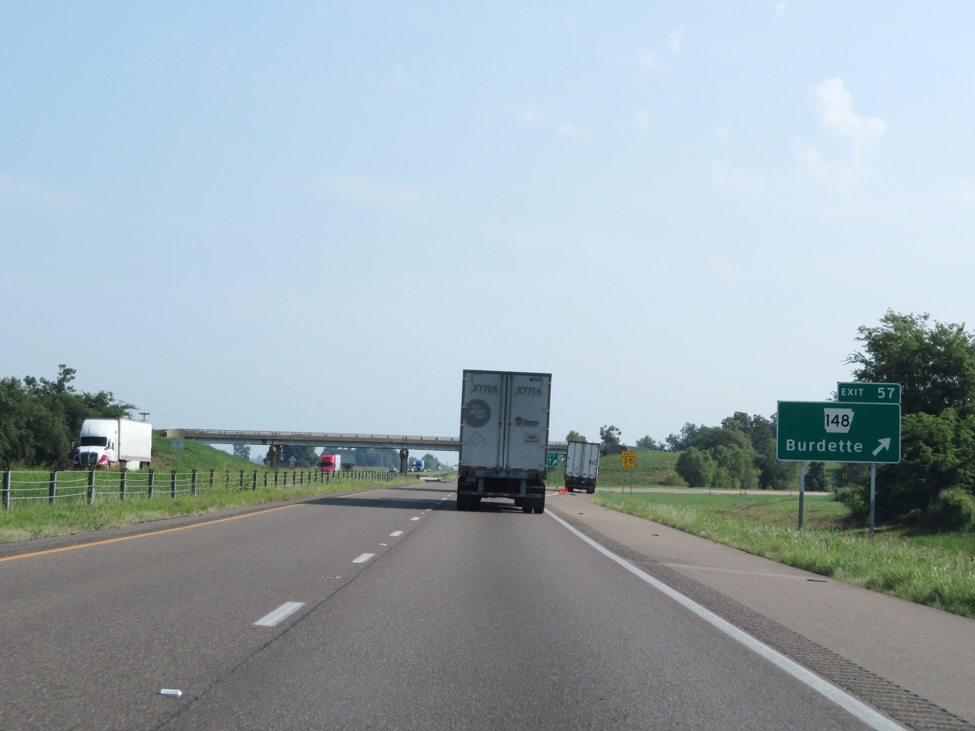 Interstate 55 North at Exit 57: AR 148 - Burdette (Photo taken 8/13/19). |