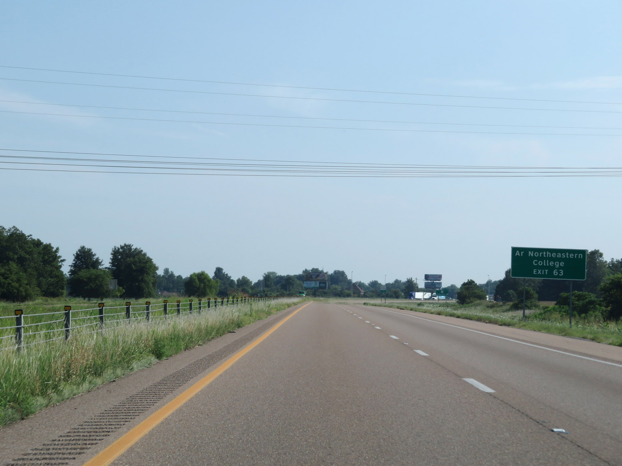 Take Exit 63 to Arkansas Northeastern College. (Photo taken 8/13/19). |