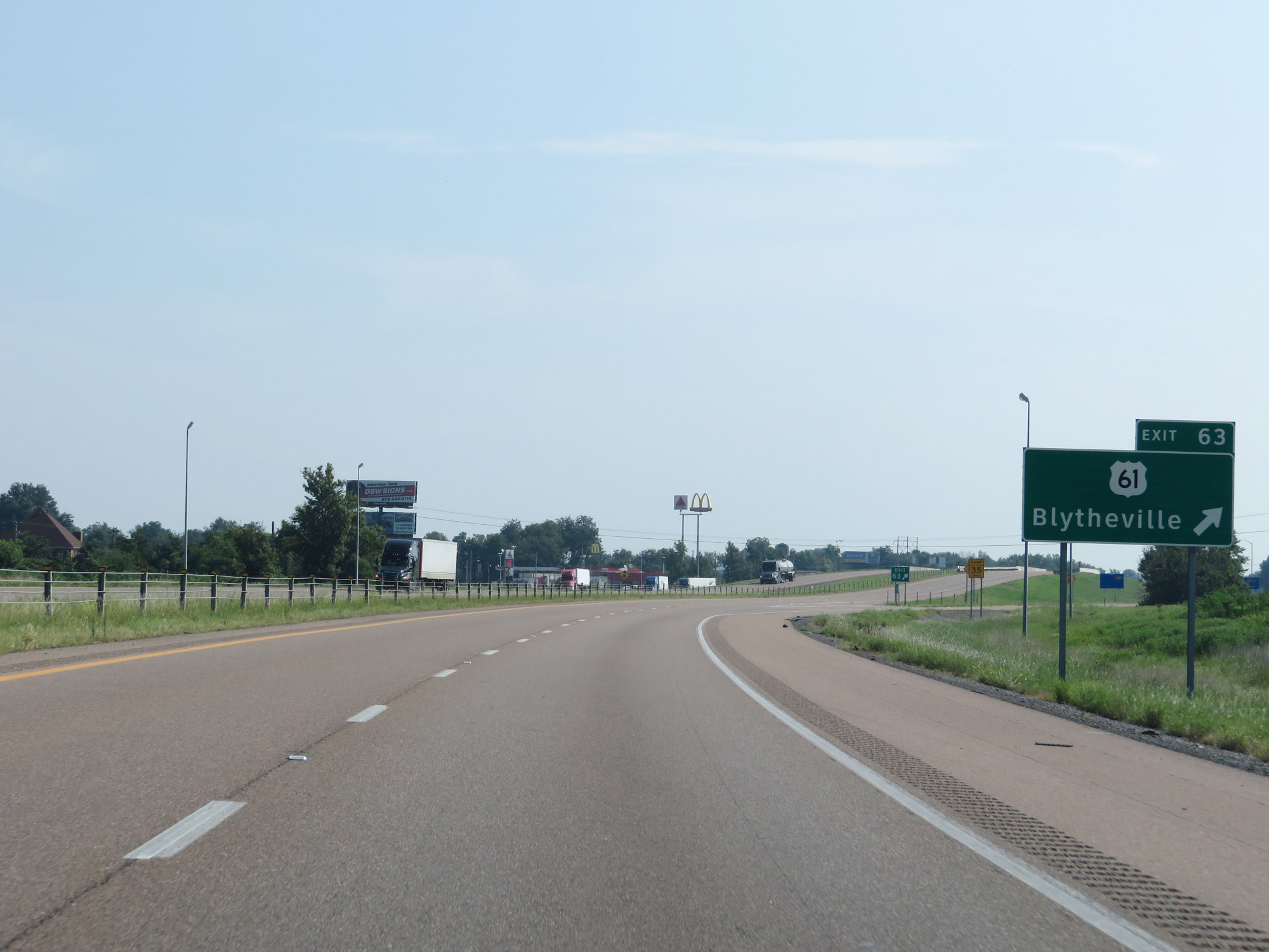 Interstate 55 North at Exit 63: US 61 - Blytheville (Photo taken 8/13/19). |