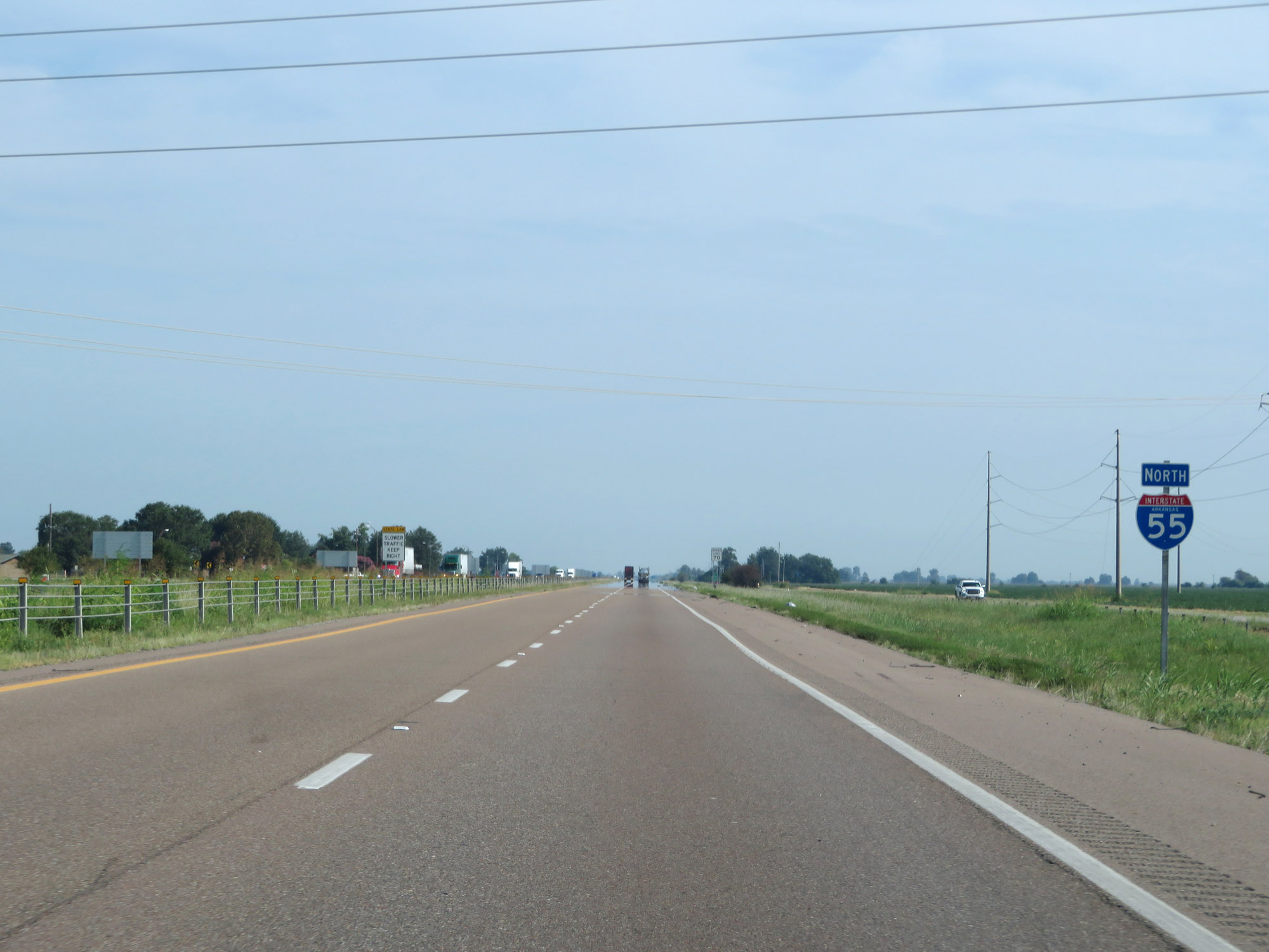 Interstate 55 North at mile marker 55. (Photo taken 8/13/19). |