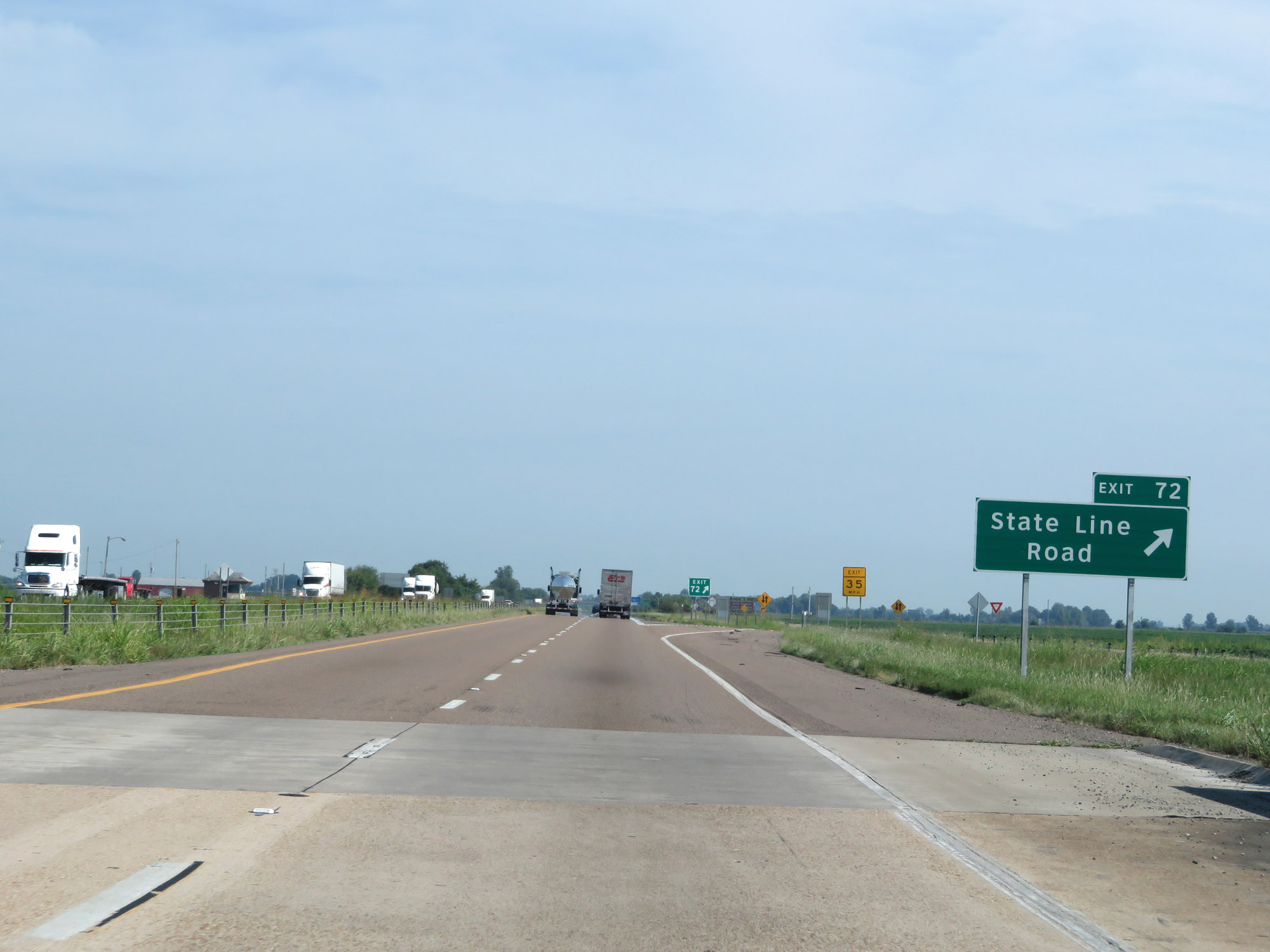 Interstate 55 North at Exit 72: State Line Road (Photo taken 8/13/19). |