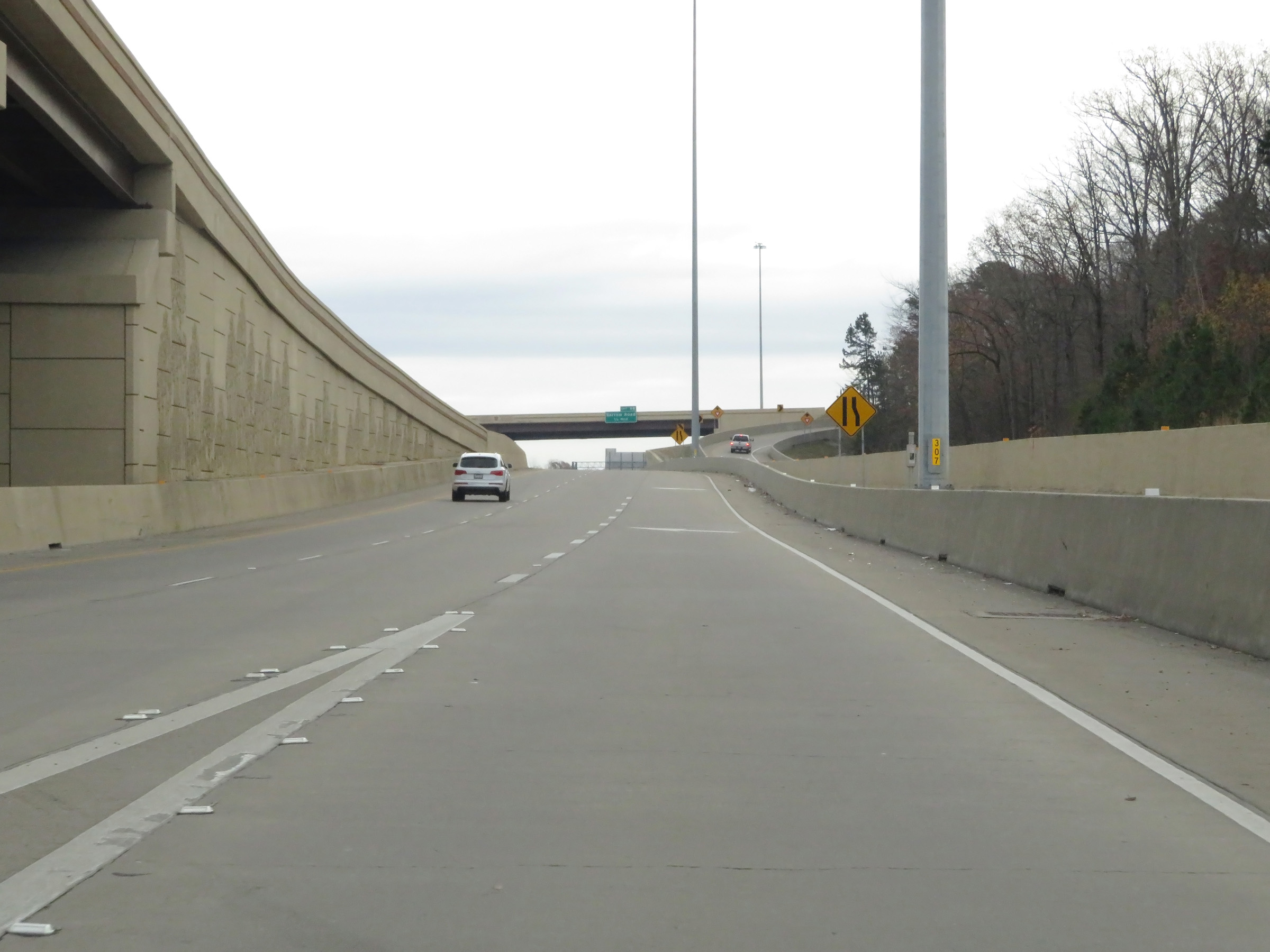 Here, we see the two lanes from Interstate 430 North merging into Interstate 630 East from the left. (Photo taken 12/11/20). |