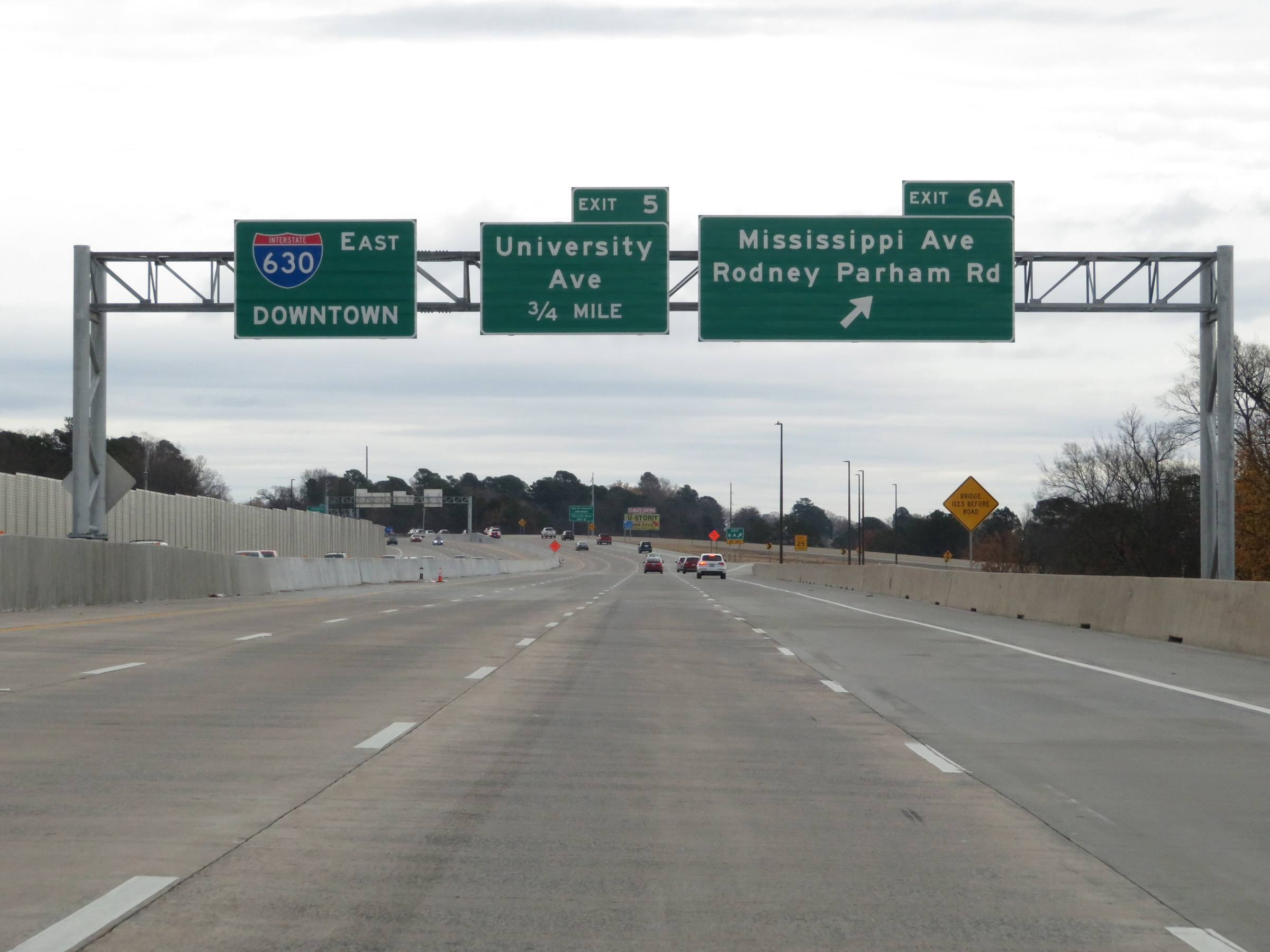 Interstate 630 East at Exit 6A: Mississippi Ave / Rodney Parham Rd (Photo taken 12/11/20). |