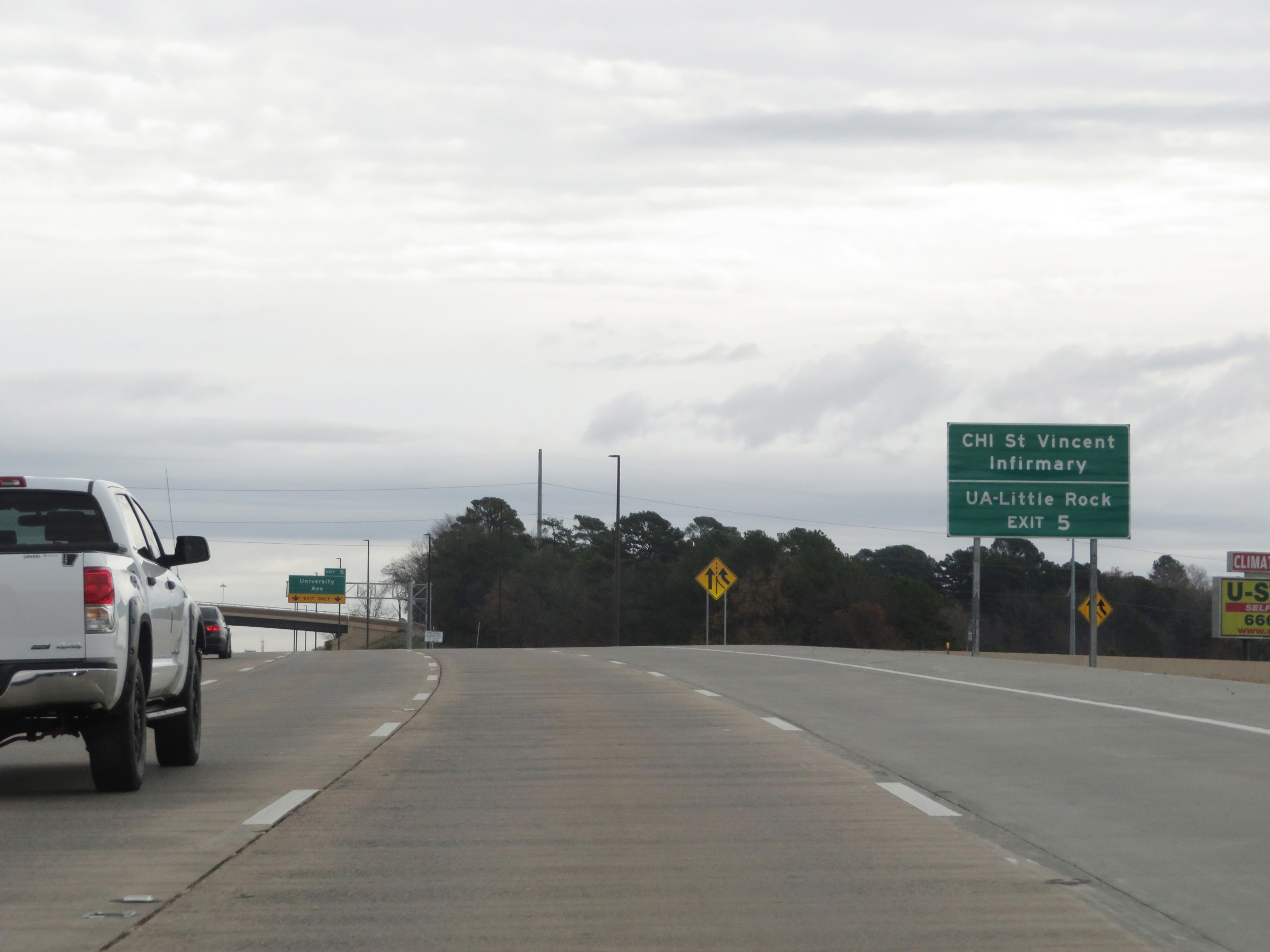 Take Exit 5 to CHI St. Vincent Infirmary and UA-Little Rock. (Photo taken 12/11/20). |