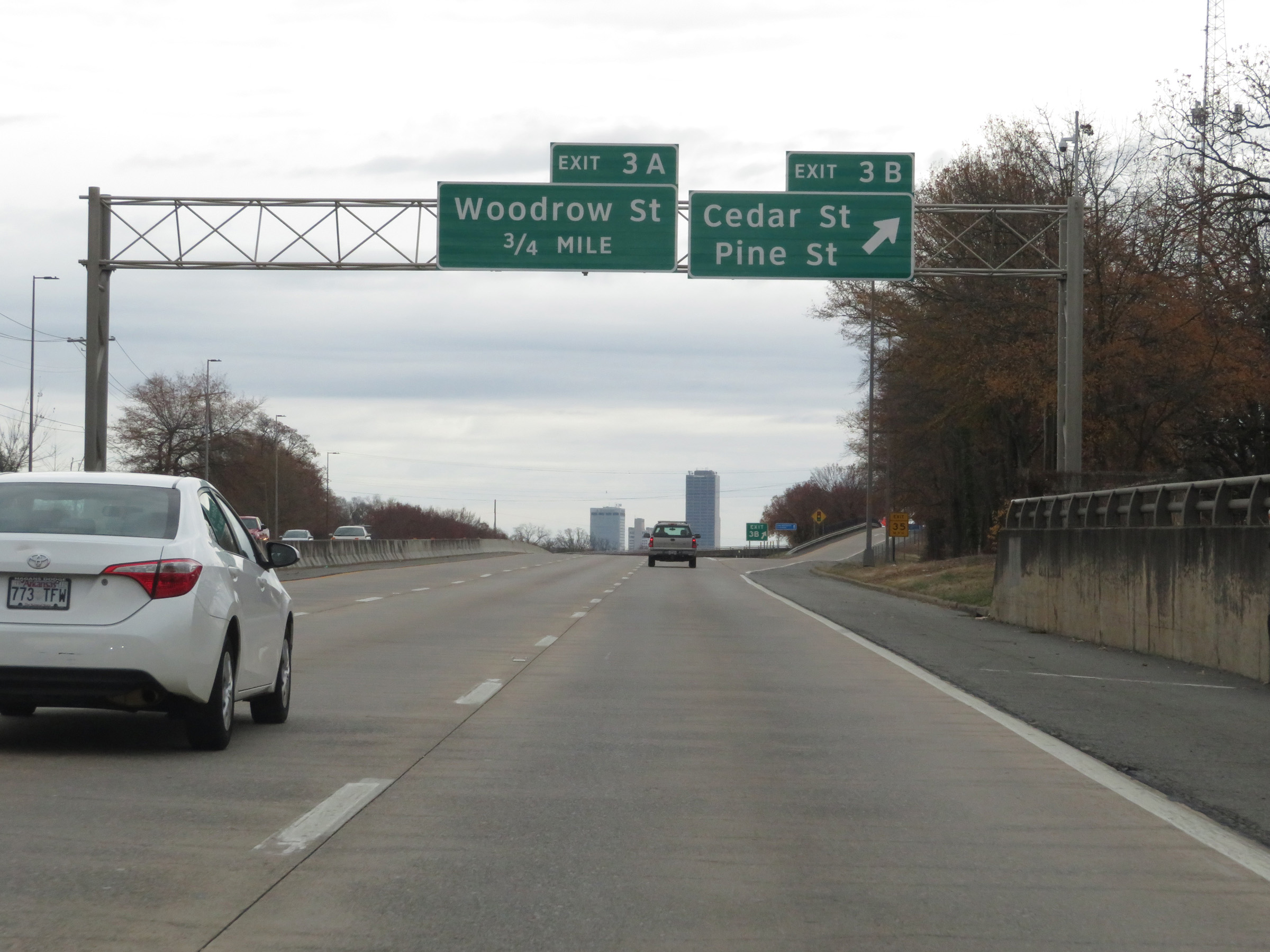 Interstate 630 East at Exit 3A: Woodrow Street (Photo taken 12/11/20). |
