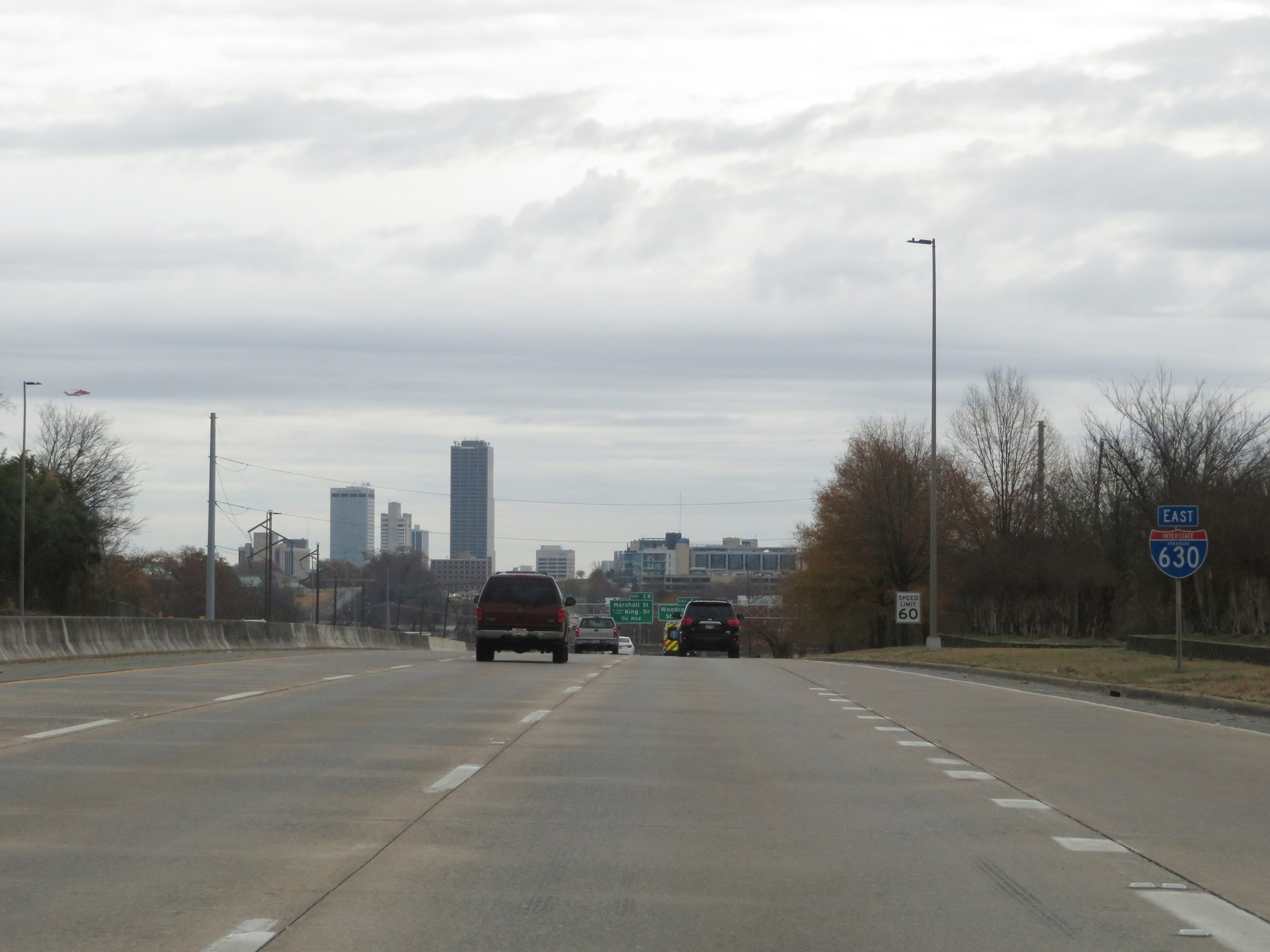 Interstate 630 East approaching the junction of Interstate 30 and its eastern terminus - 1/2 mile. (Photo taken 12/11/20). |