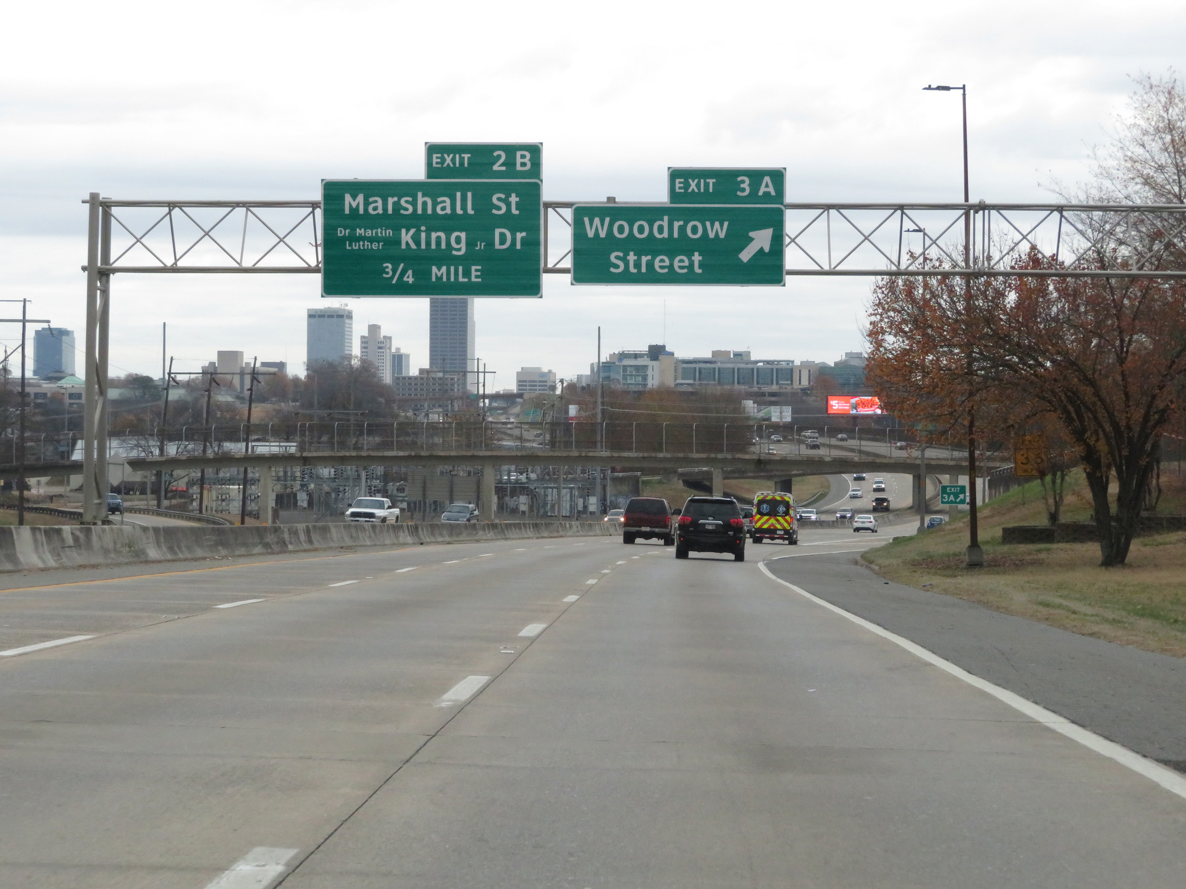 Interstate 630 East at Exit 2B: Marshall St / Dr. Martin Luther King Jr. Dr (Photo taken 12/11/20). |