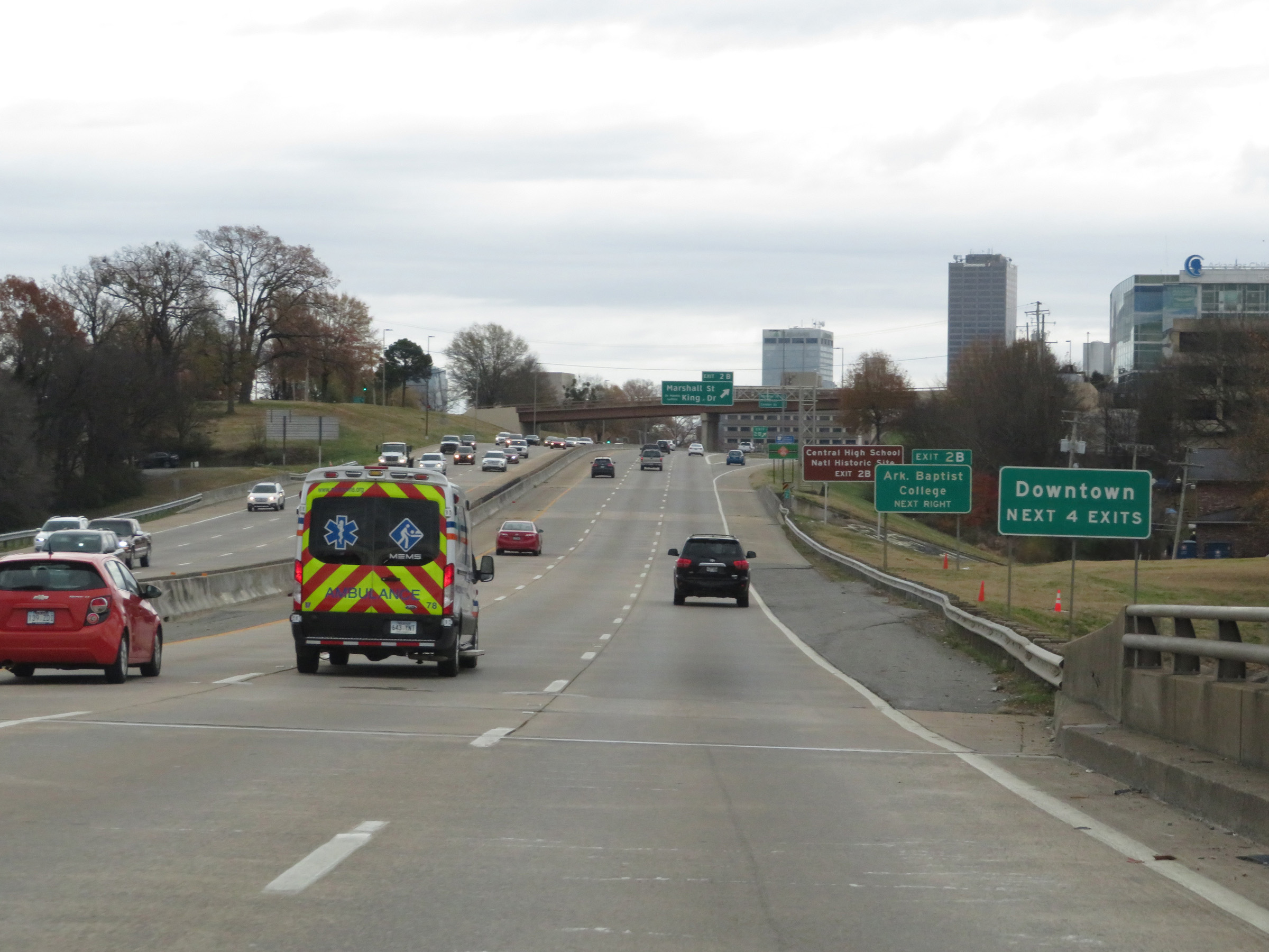 Take any of the next 4 exits to Downtown Little Rock. (Photo taken 12/11/20). |