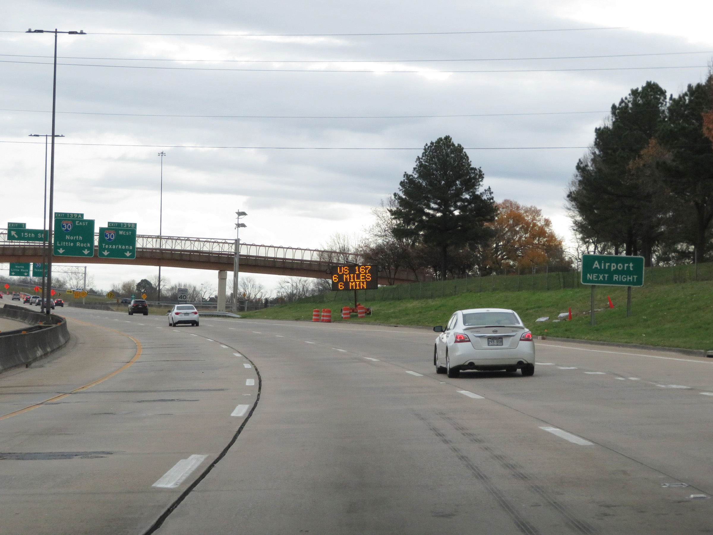 Take Exit 139B (Interstate 30 West) to the Airport. (Photo taken 12/11/20). |
