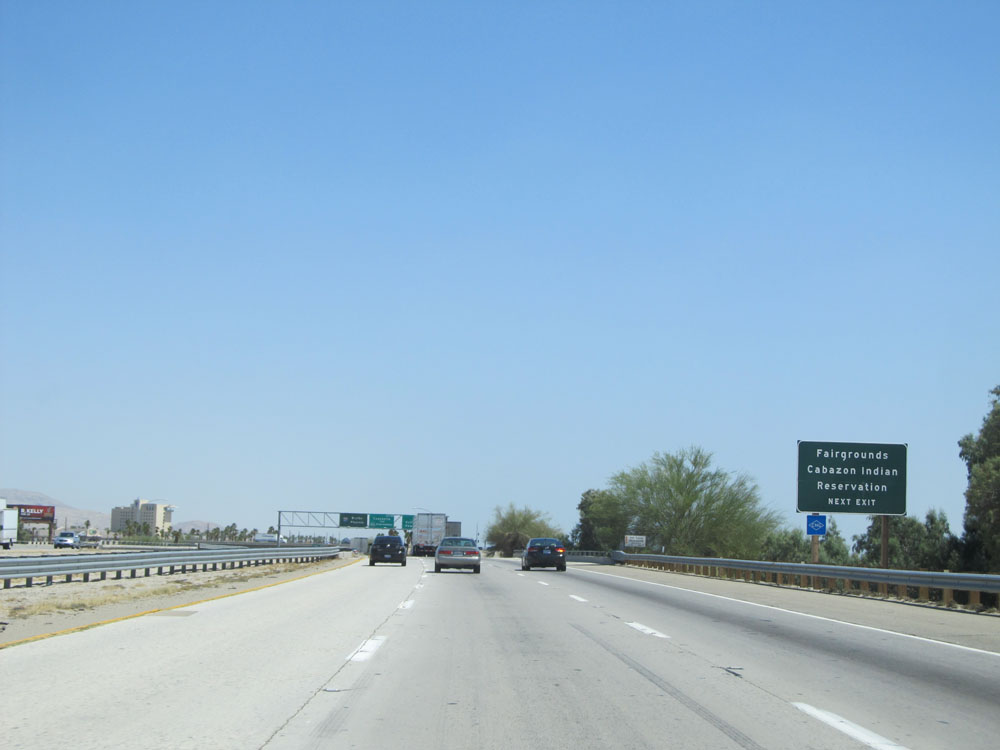 Take the next exit (Exit 144) to the Fairgrounds and Cabazon Indian Reservation. (Photo taken 5/19/15). |