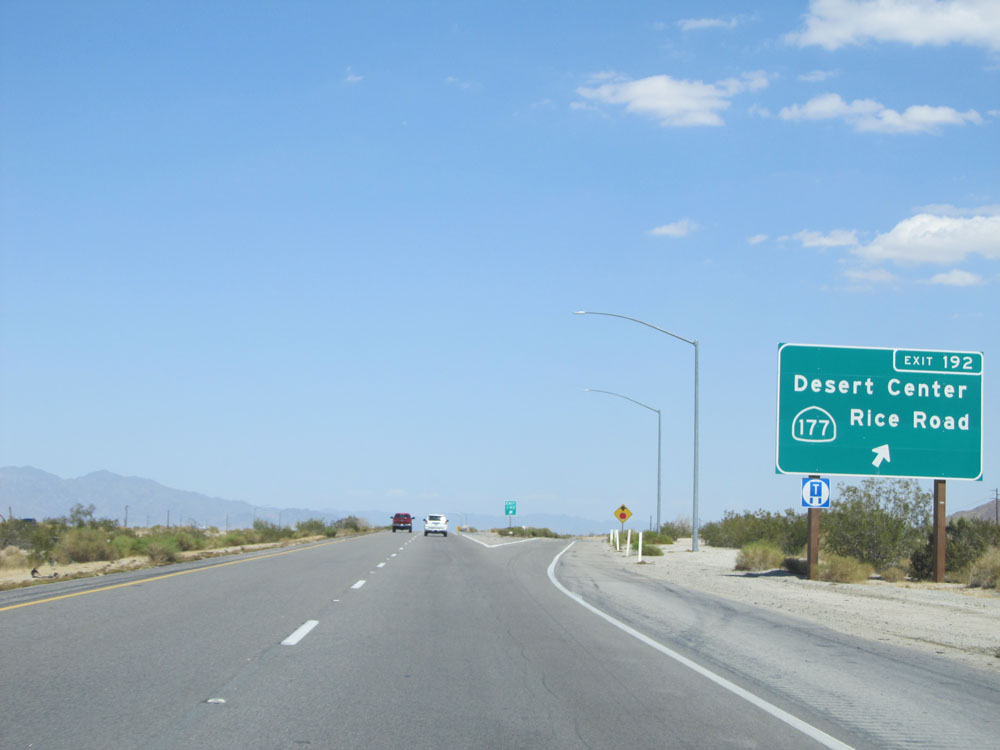 Interstate 10 East at Exit 192: CA 177 - Desert Center / Rice Road (Photo taken 5/19/15). |