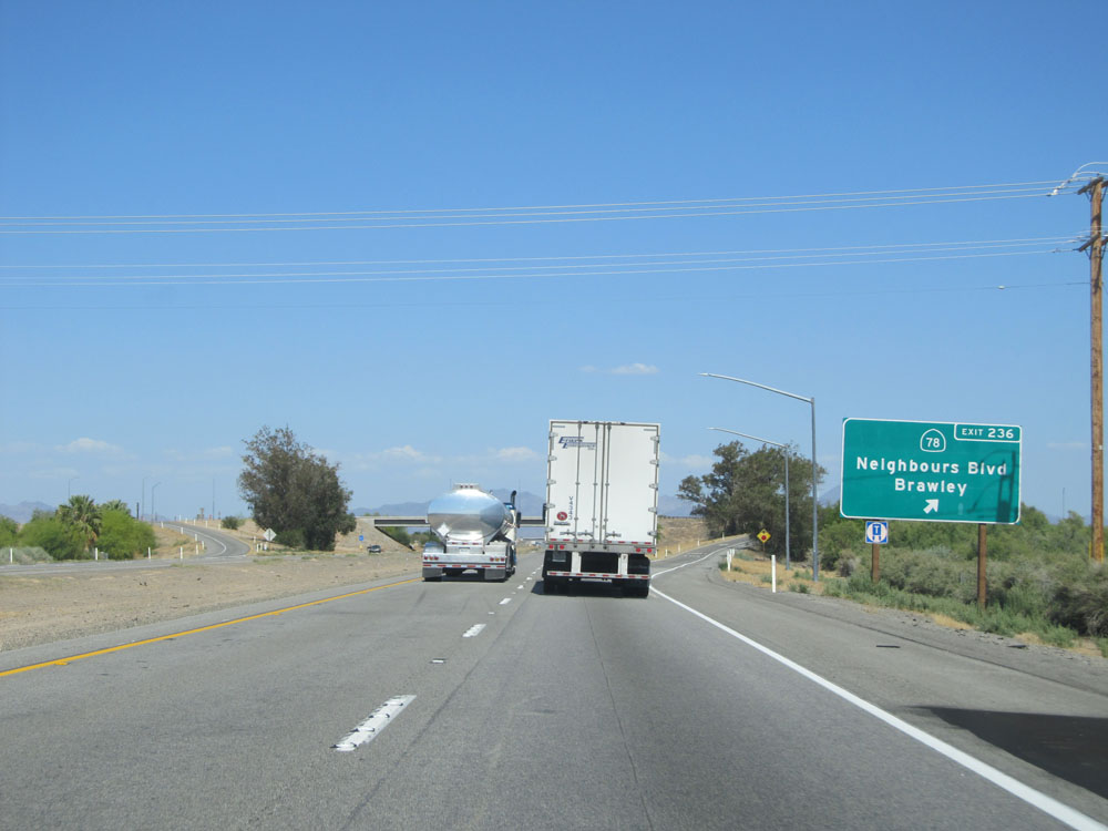 Interstate 10 East at Exit 236: CA 78 - Neighbours Blvd / Brawley (Photo taken 5/19/15). |