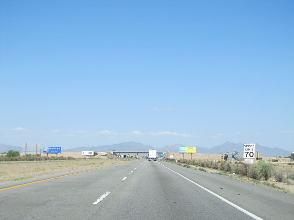 The speed limit remains 70 mph for automobiles through Blythe. (Photo taken 5/19/15). |