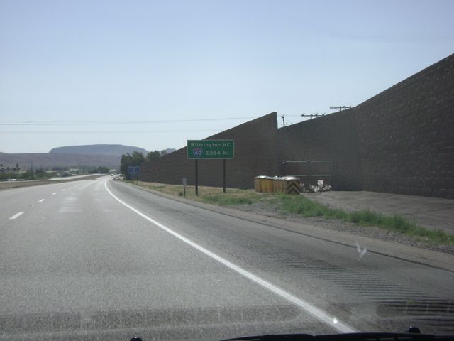 Mileage sign shortly after merging onto Interstate 40 East from Interstate 15. The sign reads that it is 2,554 miles to Wilmington, NC from this point. That is the point at which I-40 ends on the east coast. (Photo taken 5/21/10). |