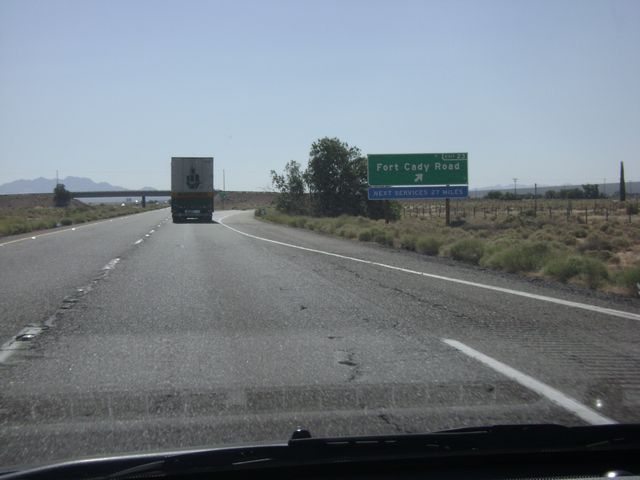 Interstate 40 East at Exit 23: Fort Cady Road. This next services past this exit are in 27 miles. (Photo taken 5/21/10). |