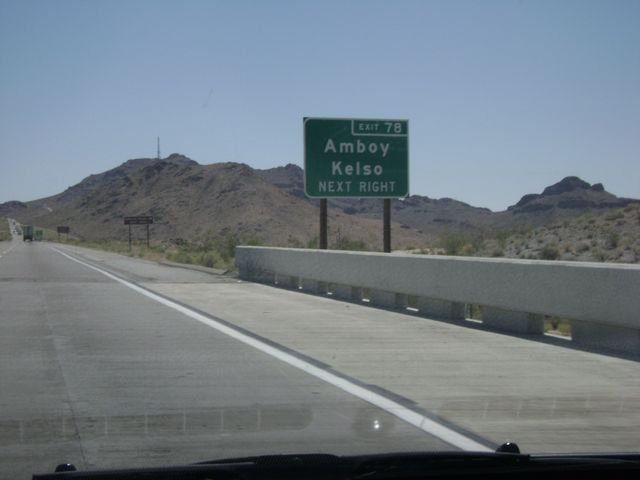 Interstate 40 East approaching Exit 78. Take Exit 78 to get to Amboy and Kelso. (Photo taken 5/21/10). |