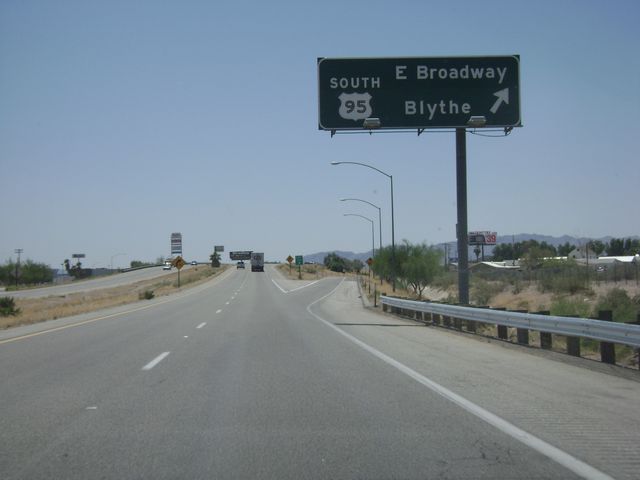 Interstate 40 East at Exit 144: US 95 South - E Broadway / Blythe (Photo taken 5/21/10). |