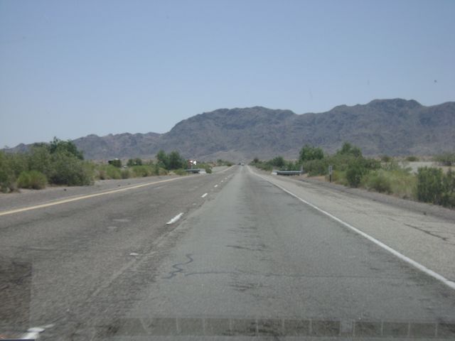 Sign saying that you are now crossing the Arizona state line, and leaving California. (Photo taken 5/21/10). |