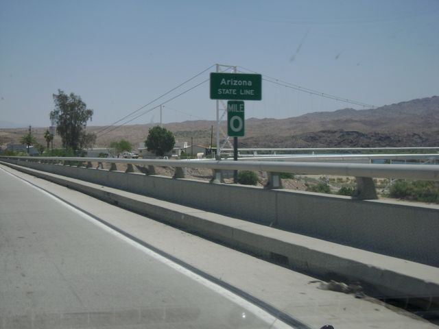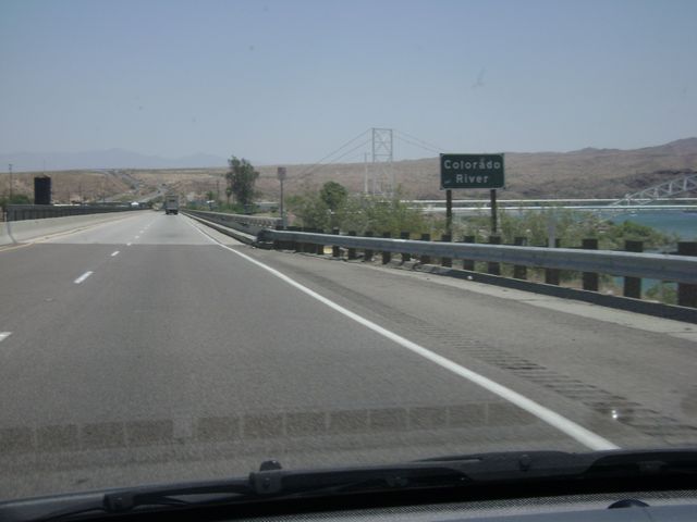 Sign indicating you are now about to cross the Colorado River, and into the state of Arizona. (Photo taken 5/21/10). |