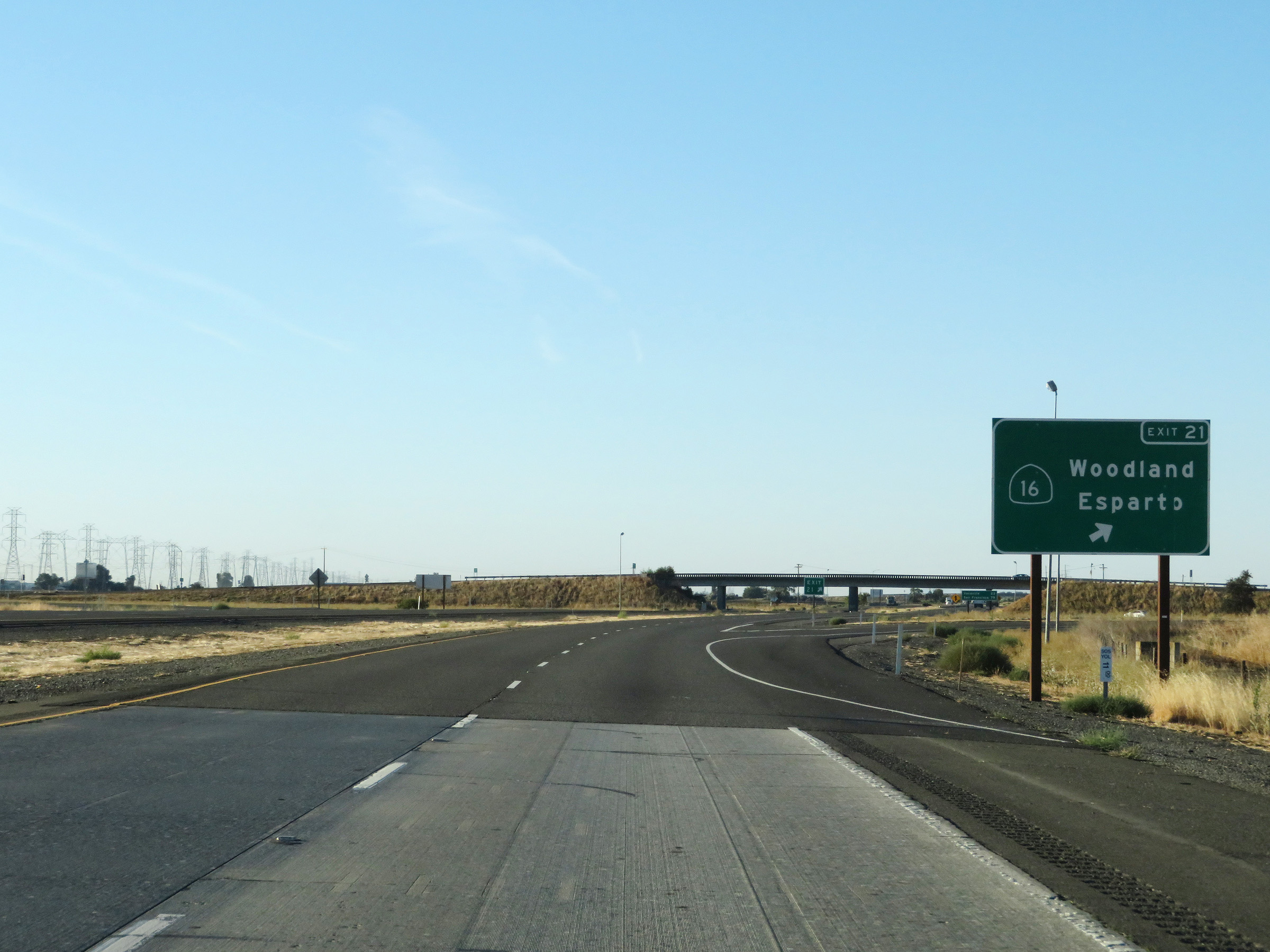 Interstate 505 South at Exit 21: CA 16 - Woodland / Esparto (Photo taken 9/24/19). |