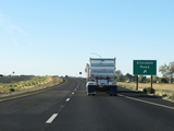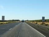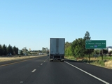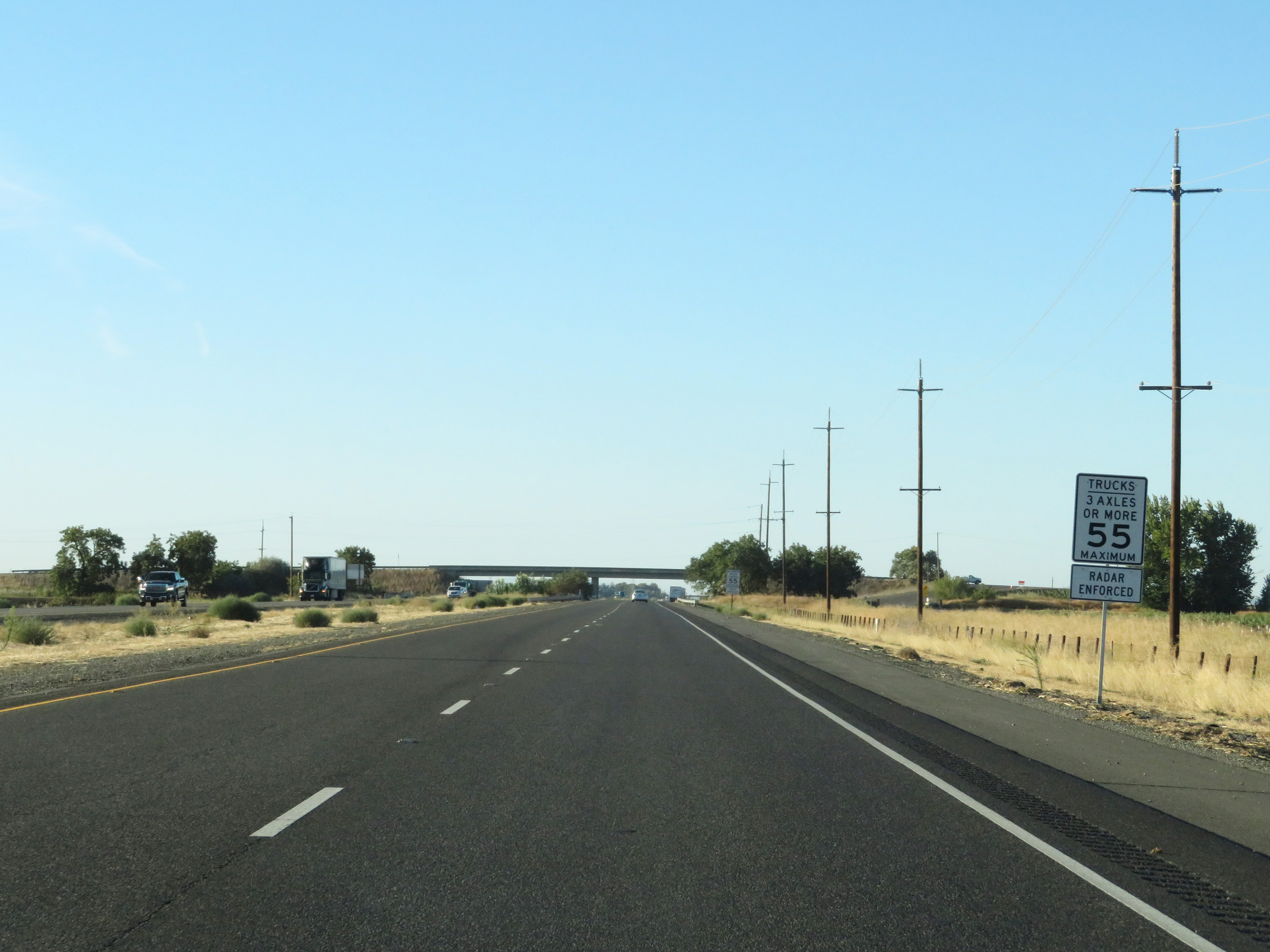 The speed limit for trucks of 3 axles or more starts out at 55 mph. This is the standard maximum speed limit for trucks on most rural Interstate highways in California. (Photo taken 9/24/19). |