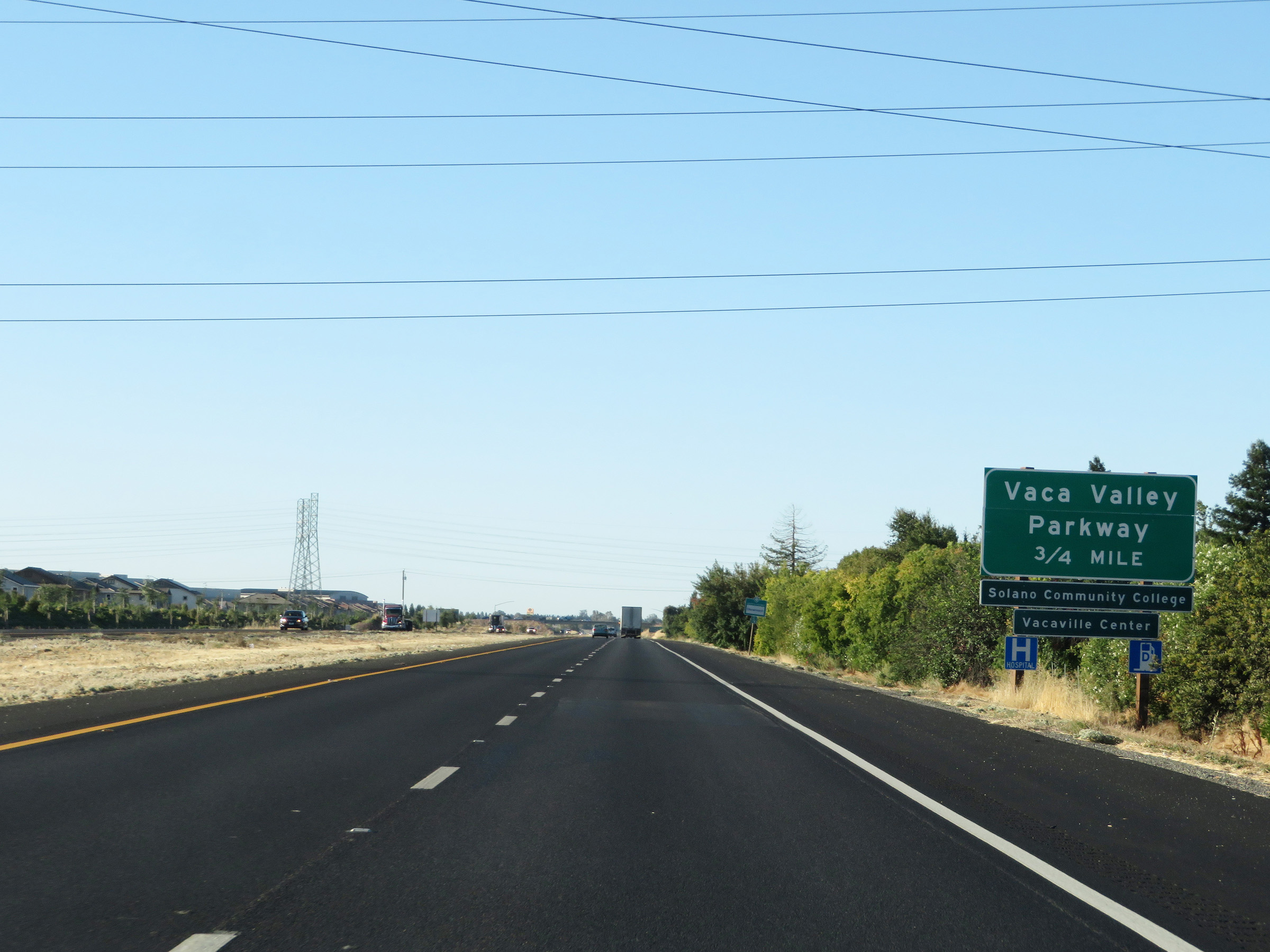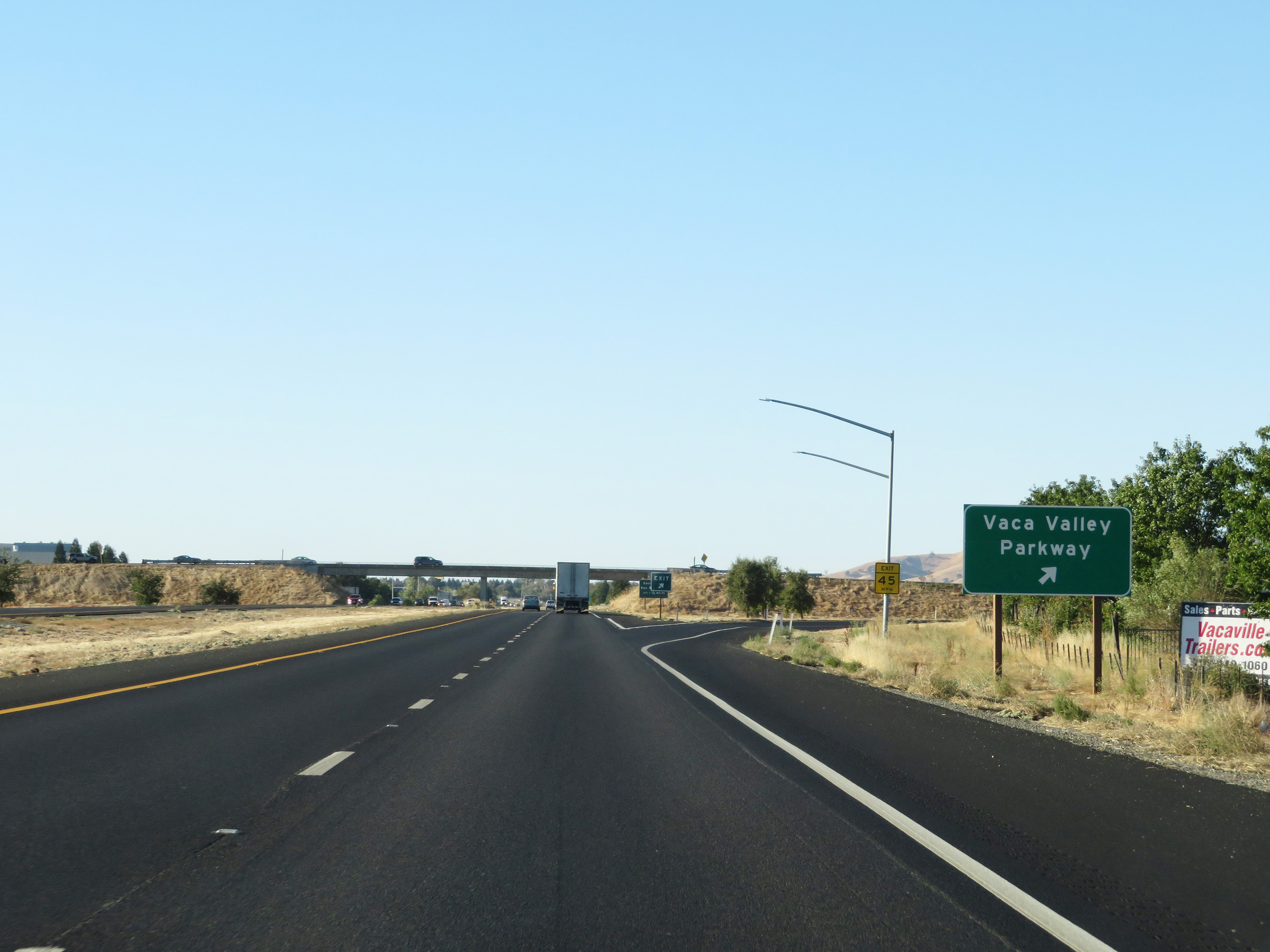 Interstate 505 South at Exit 1C: Vaca Valley Parkway (Photo taken 9/24/19). |