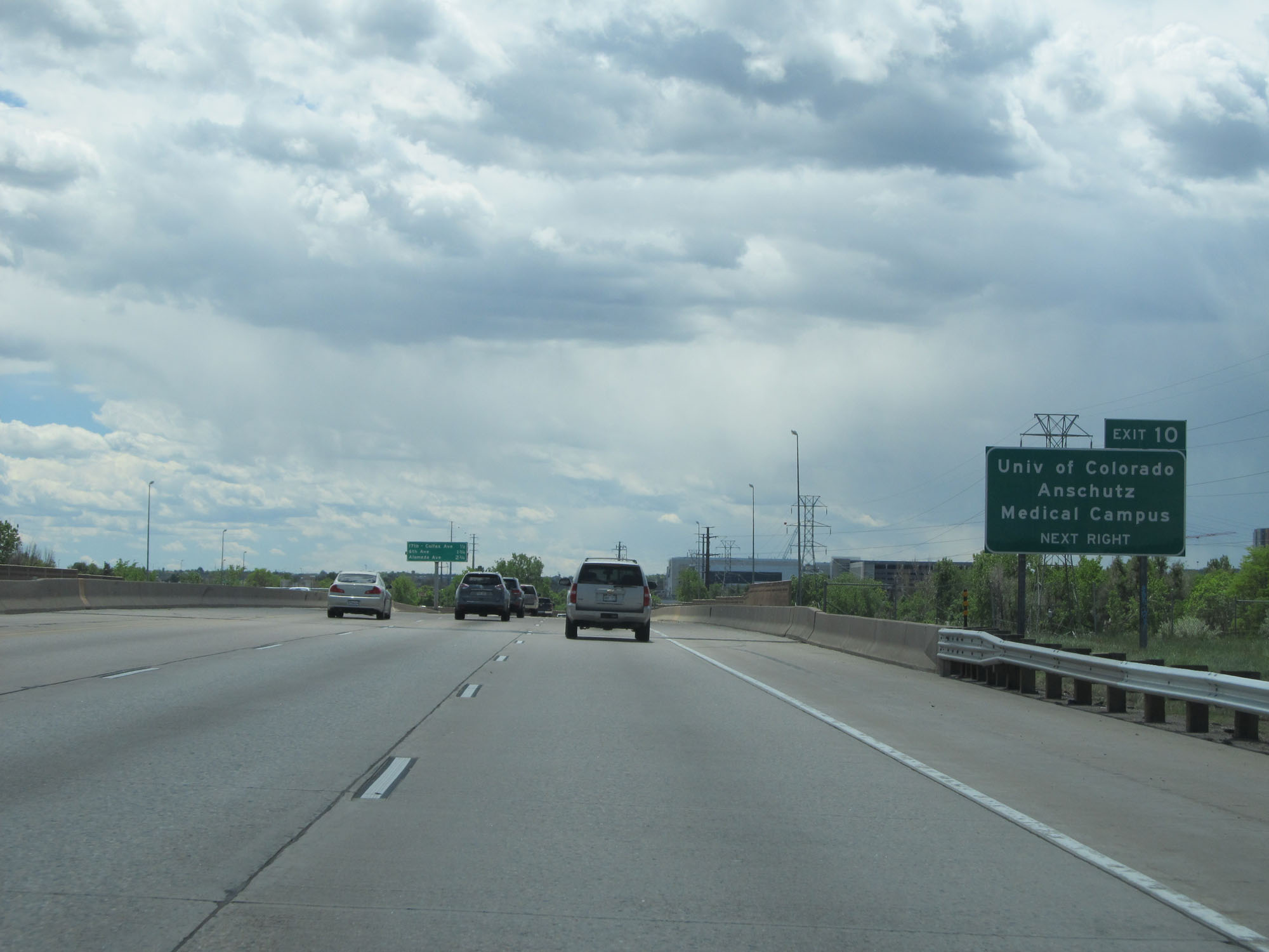 Take Exit 10 to University of Colorado / Anschutz Medical Campus. (Photo taken 5/28/16). |