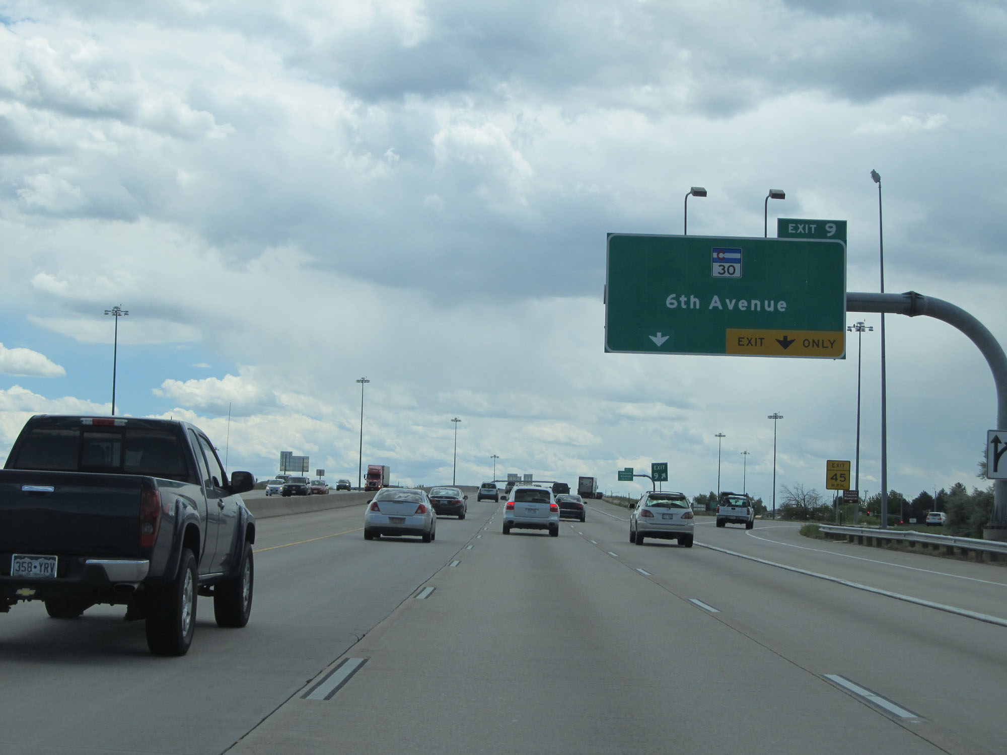 Interstate 225 South at Exit 9: CO 30 - 6th Avenue (Photo taken 5/28/16). |