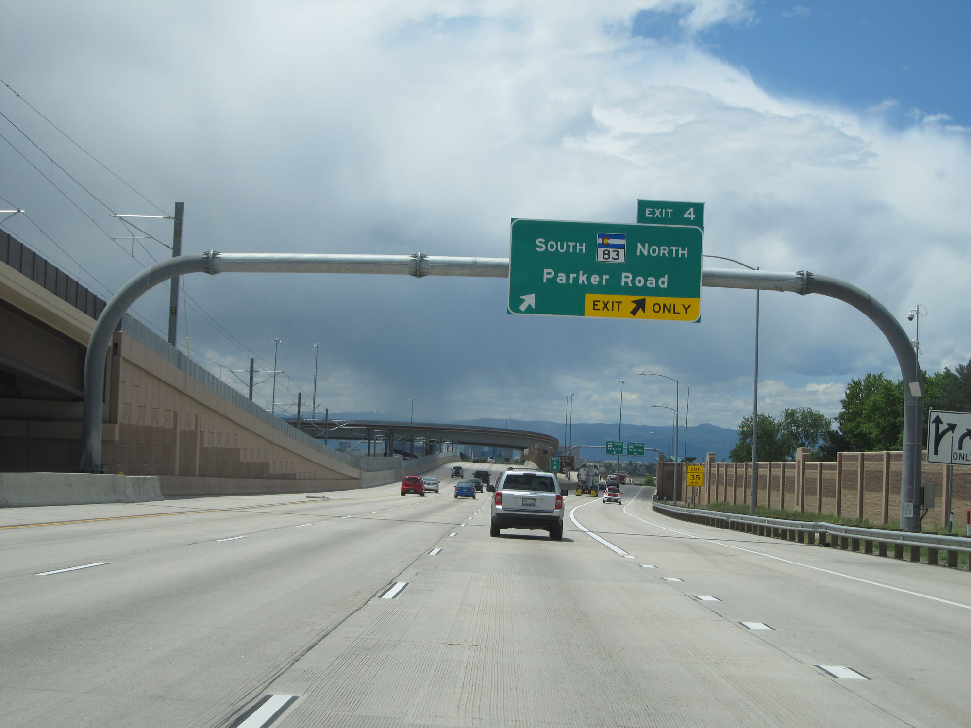 Interstate 225 South at Exit 4: CO 83 - Parker Road (Photo taken 5/28/16). |