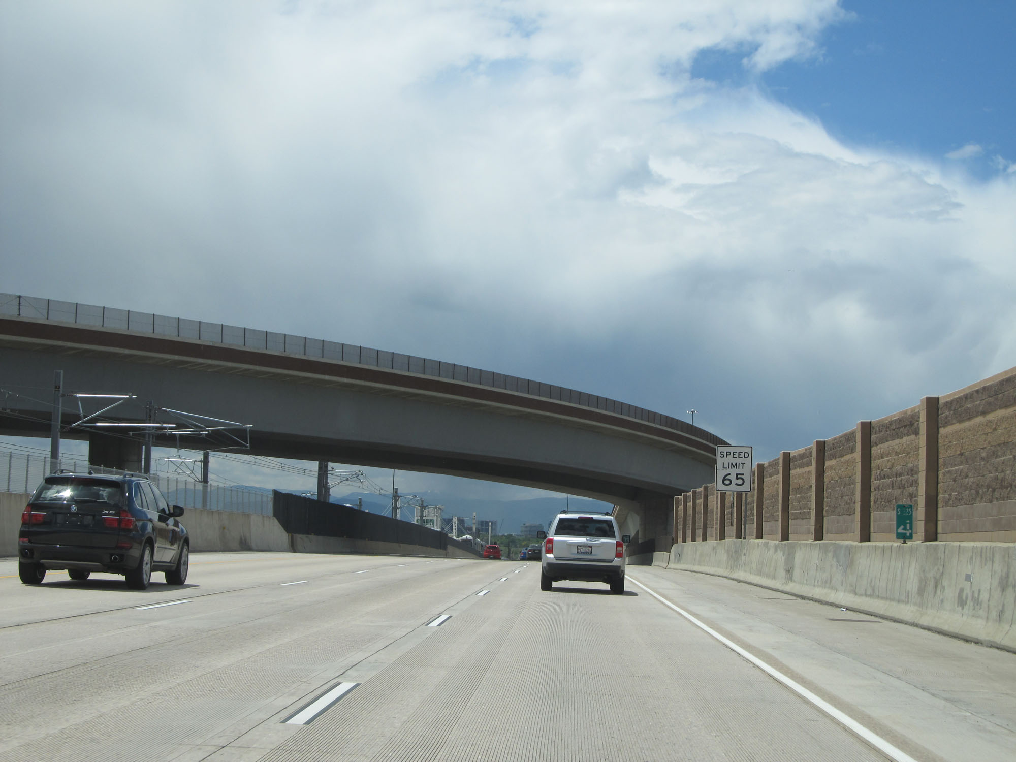 View on the ramp to Interstate 25 South as it passes underneath I-25. (Photo taken 5/28/16). |